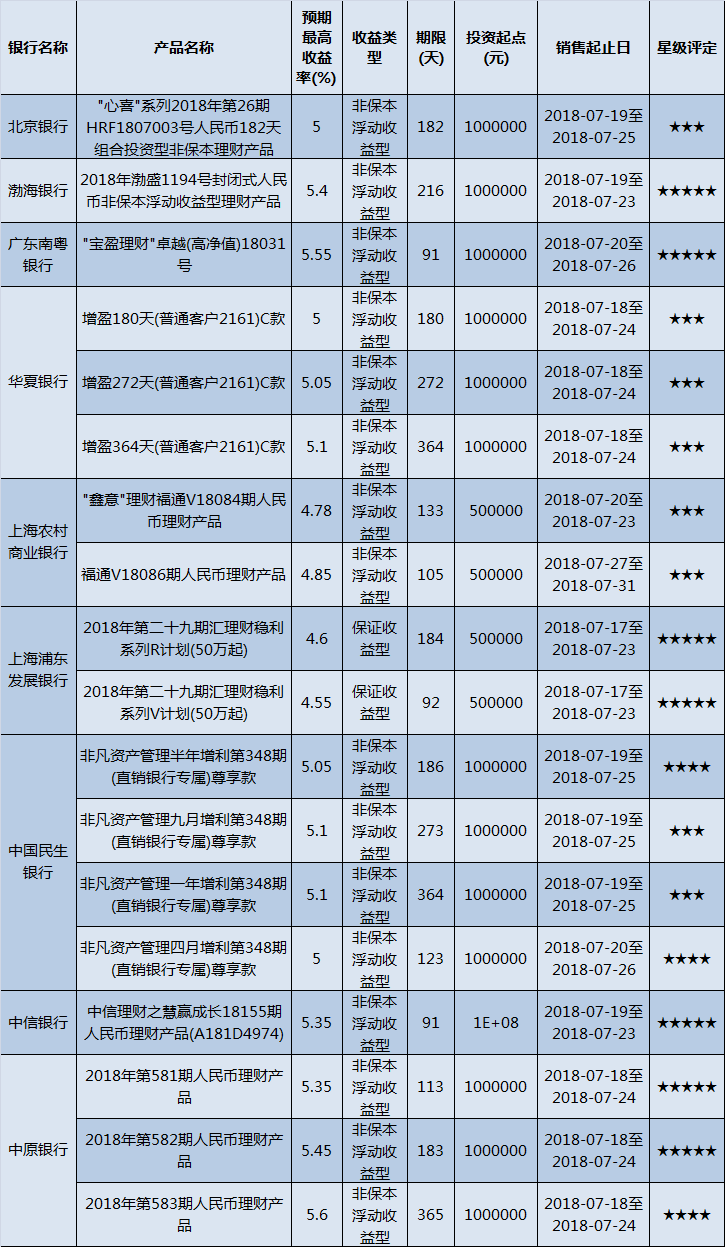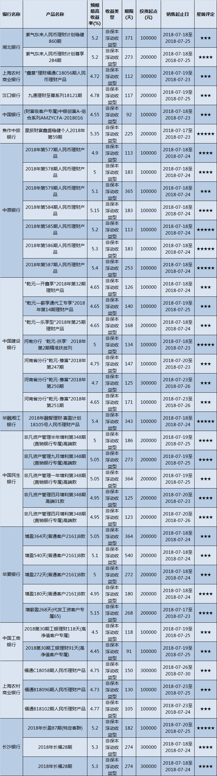 高门槛(50万元及以上)的理财产品中,华中地区有18款获得普益标准星级评定,平均预期收益率为5.1%。其中三星产品8款,平均预期收益率为5%;四星产品3款,平均预期收益率为5.22%;五星产品7款,平均预期收益率为5.18%。