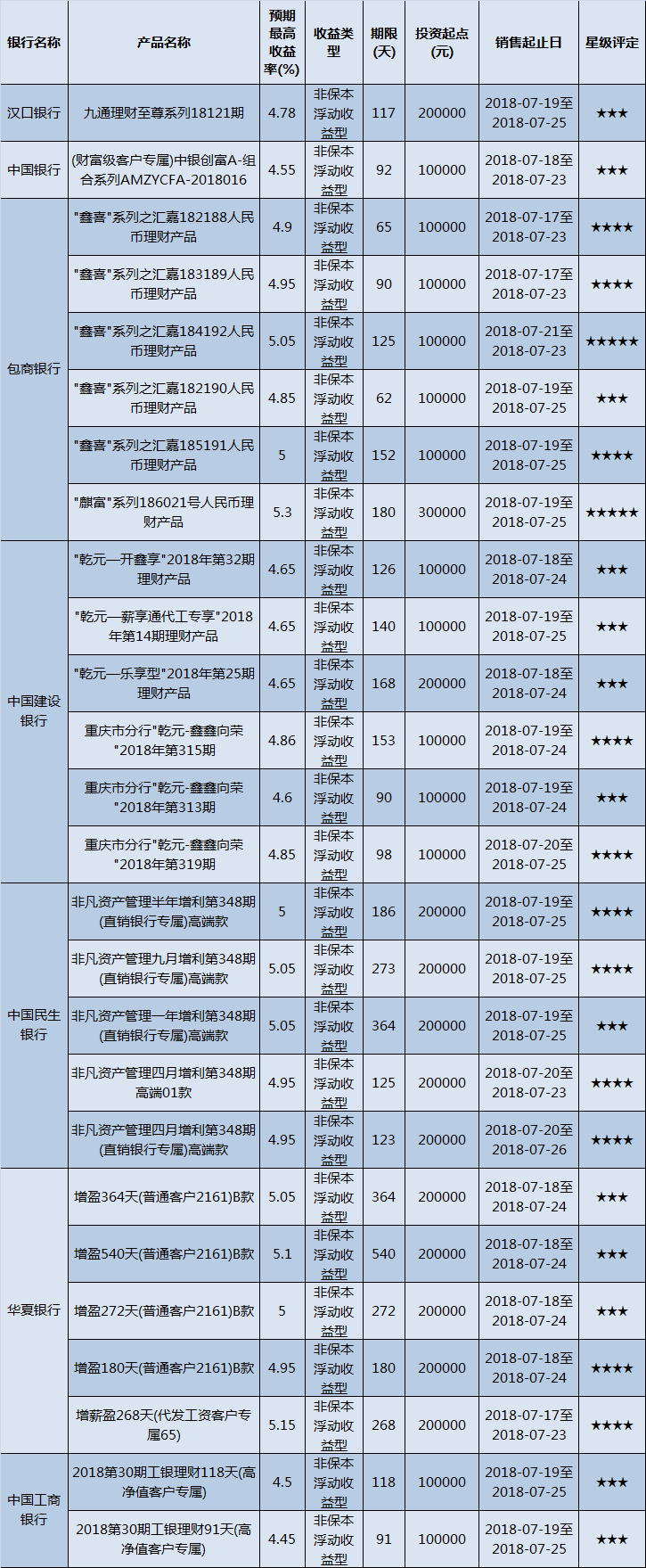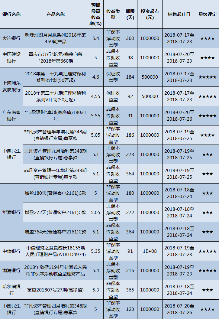 高门槛(50万元及以上)的理财产品中,西南地区有15款获得普益标准星级评定,平均预期收益率为5.1%。其中三星产品6款,平均预期收益率为5.11%;四星产品4款,平均预期收益率为5.11%;五星产品5款,平均预期收益率为5.09%。
