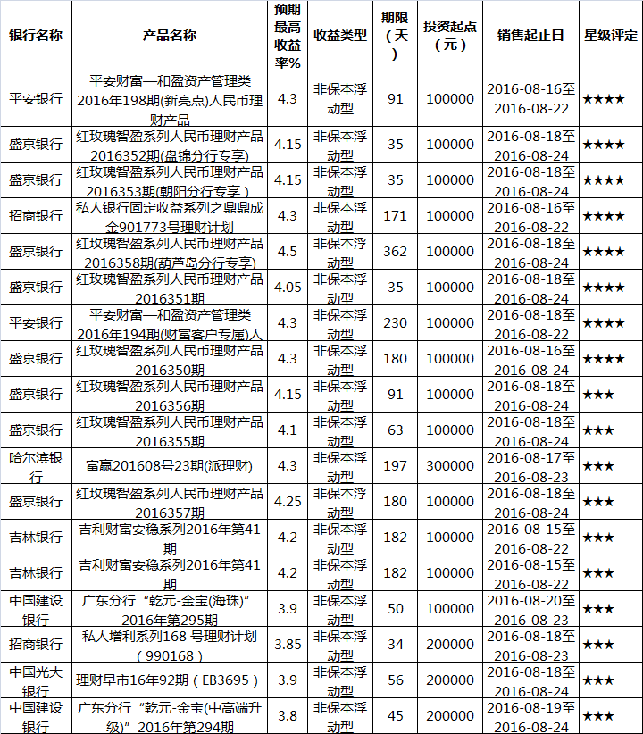 其余产品暂时未予评级。(数据截至上周五18:00)