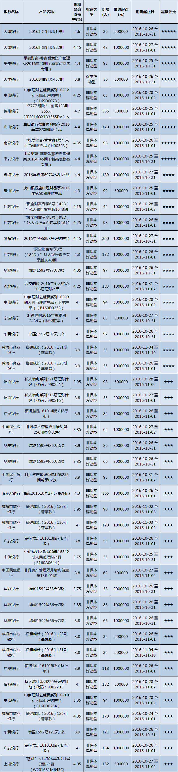 高门槛(50万元及以上)的理财产品中,华北地区有47款获得普益标准评级,平均预期收益率为4.06%。其中三星产品25款,平均预期收益率为3.90%;四星产品13款,平均预期收益率为4.15%;五星产品9款,平均预期收益率为4.37%。