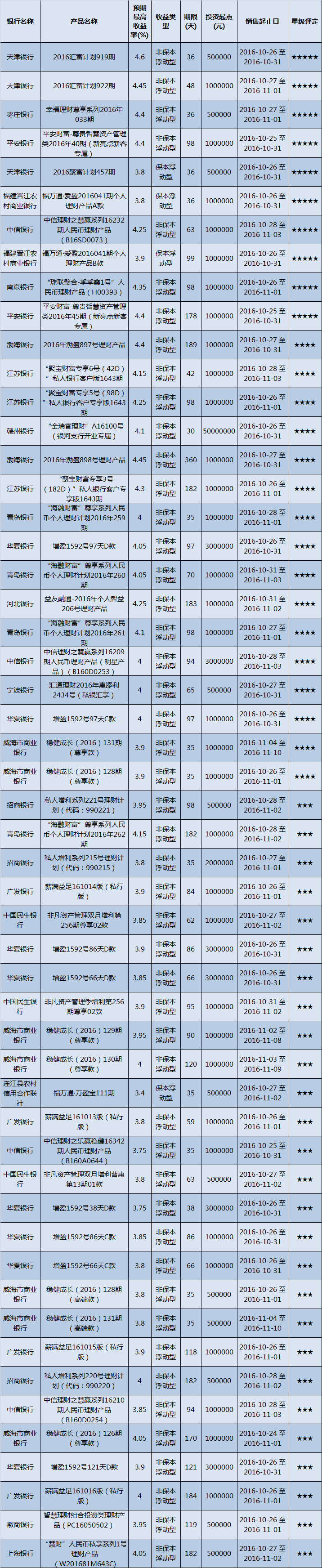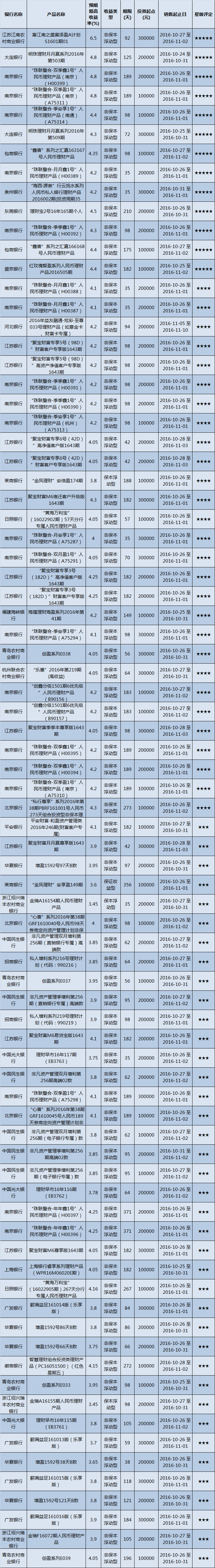 产品星级评定(2016-10-31)