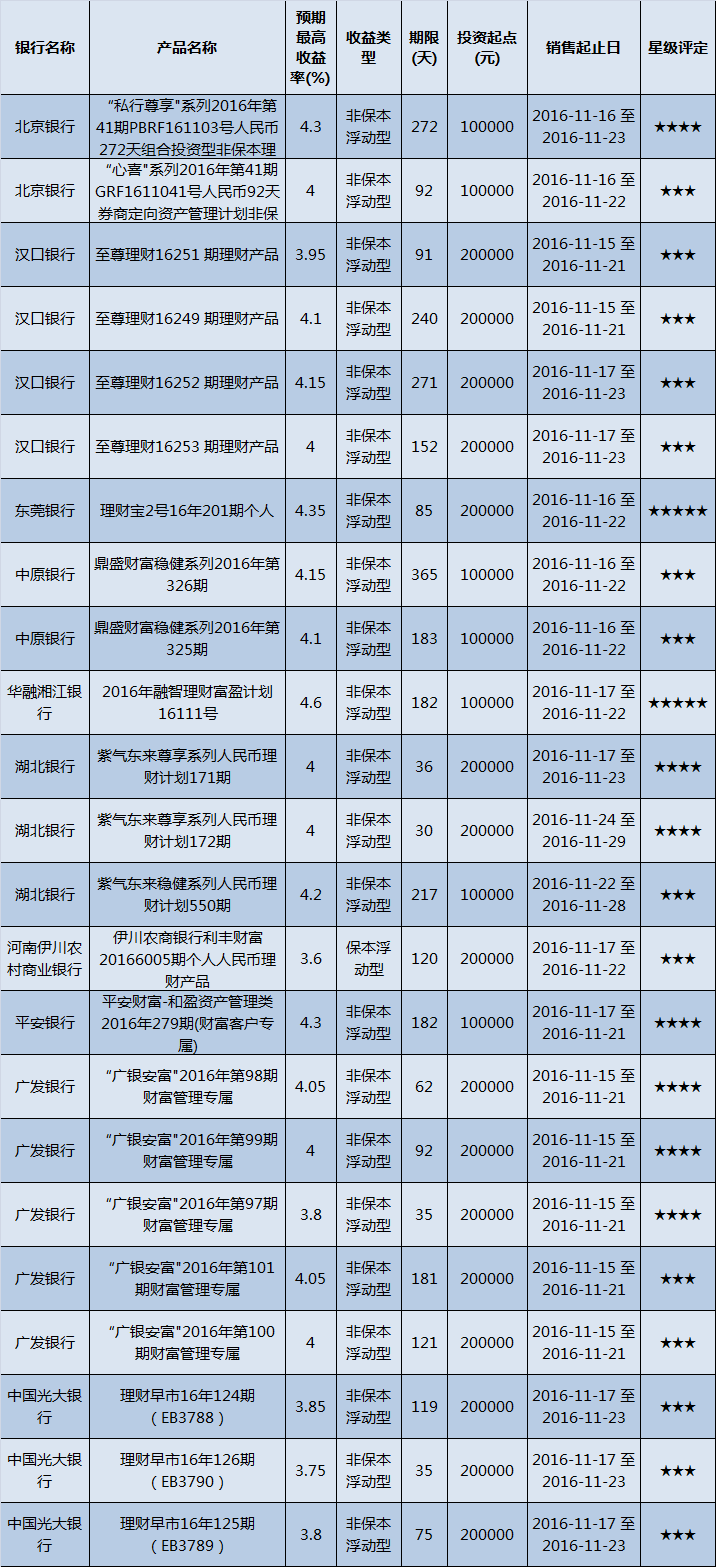 其余产品暂时未予评级。(数据截至上周五18:00)