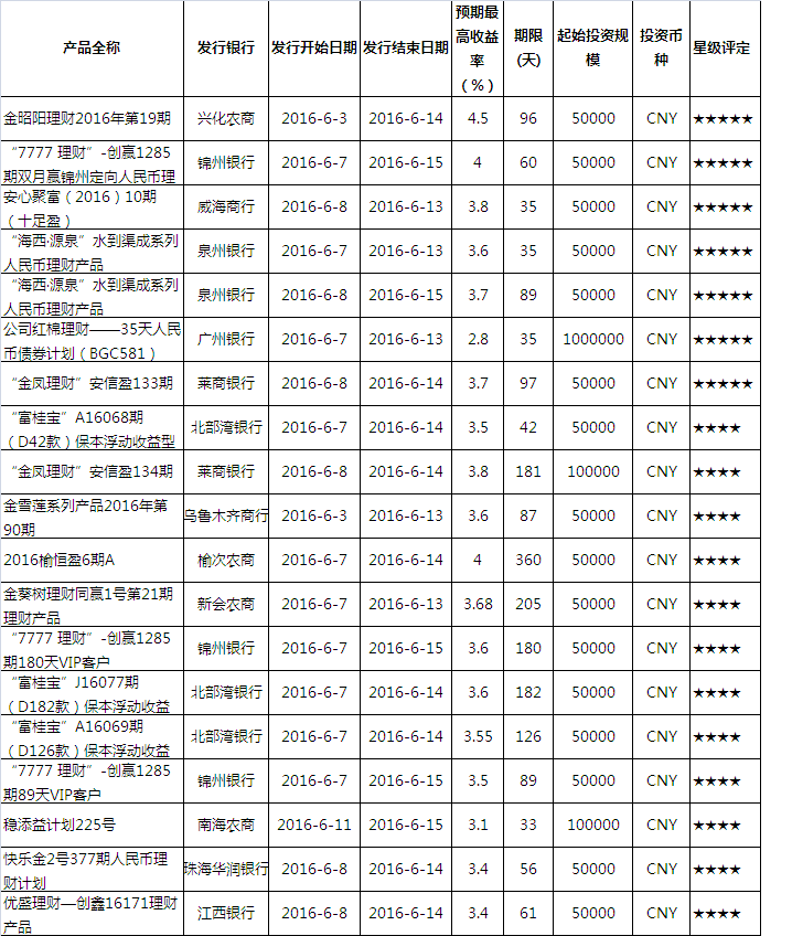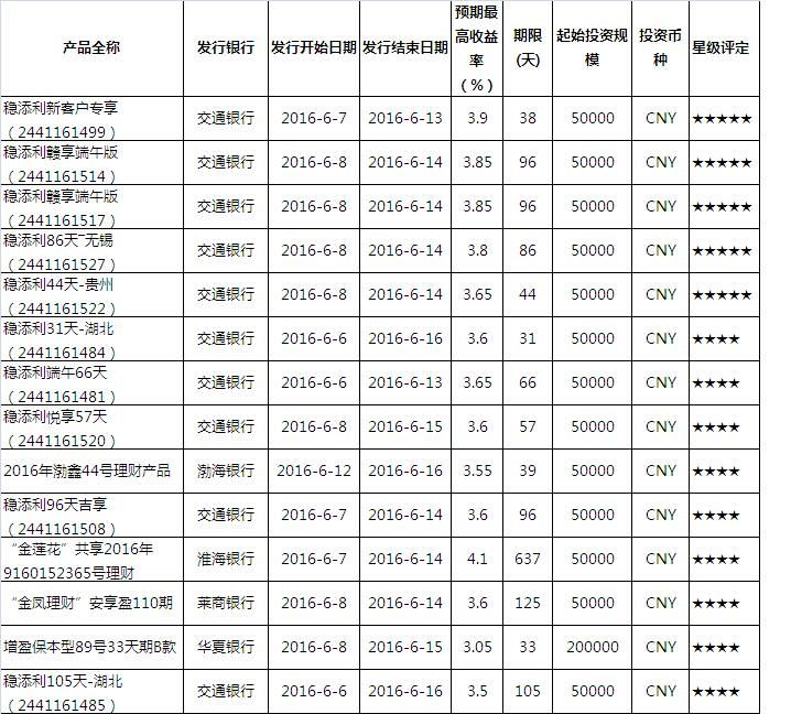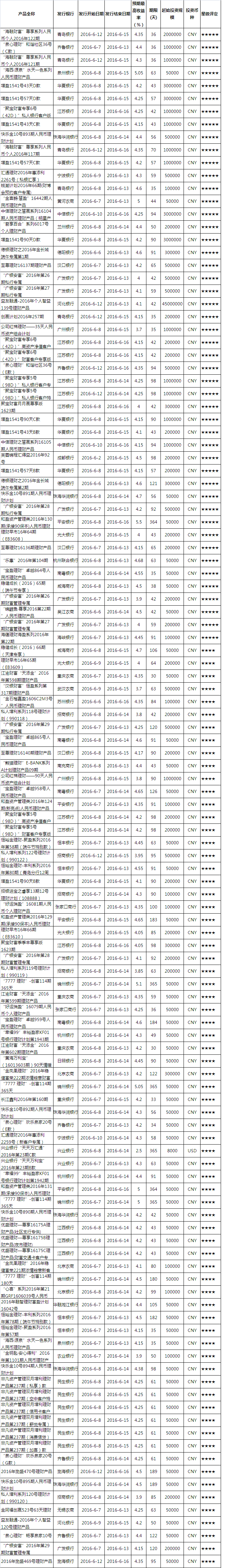 产品星级评定(2016-6-12)