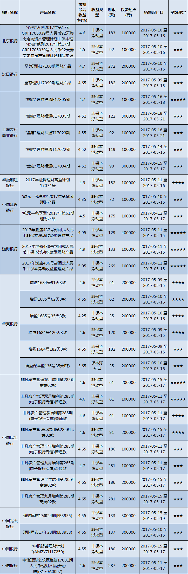 其余产品暂时未予评级。(数据截至上周五18:00)