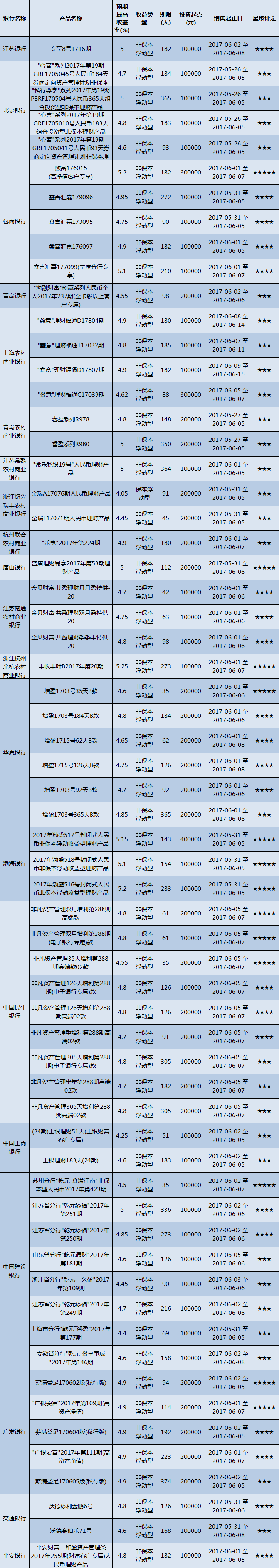 产品星级评定(2017-06-05)