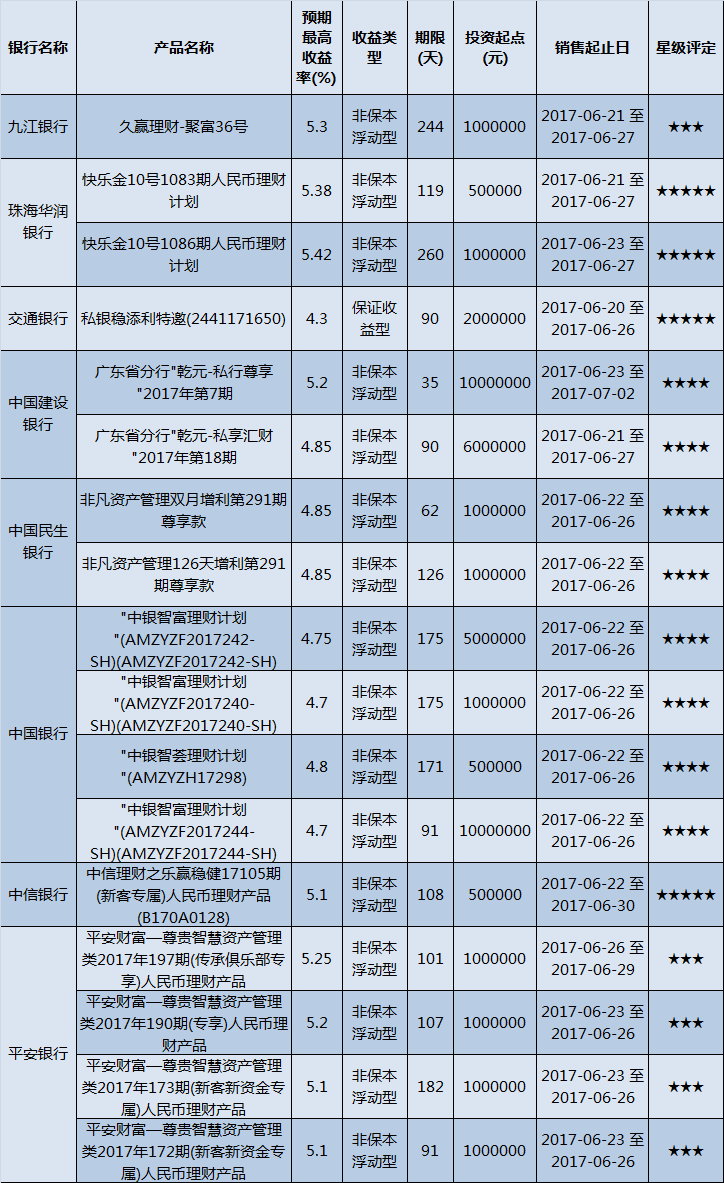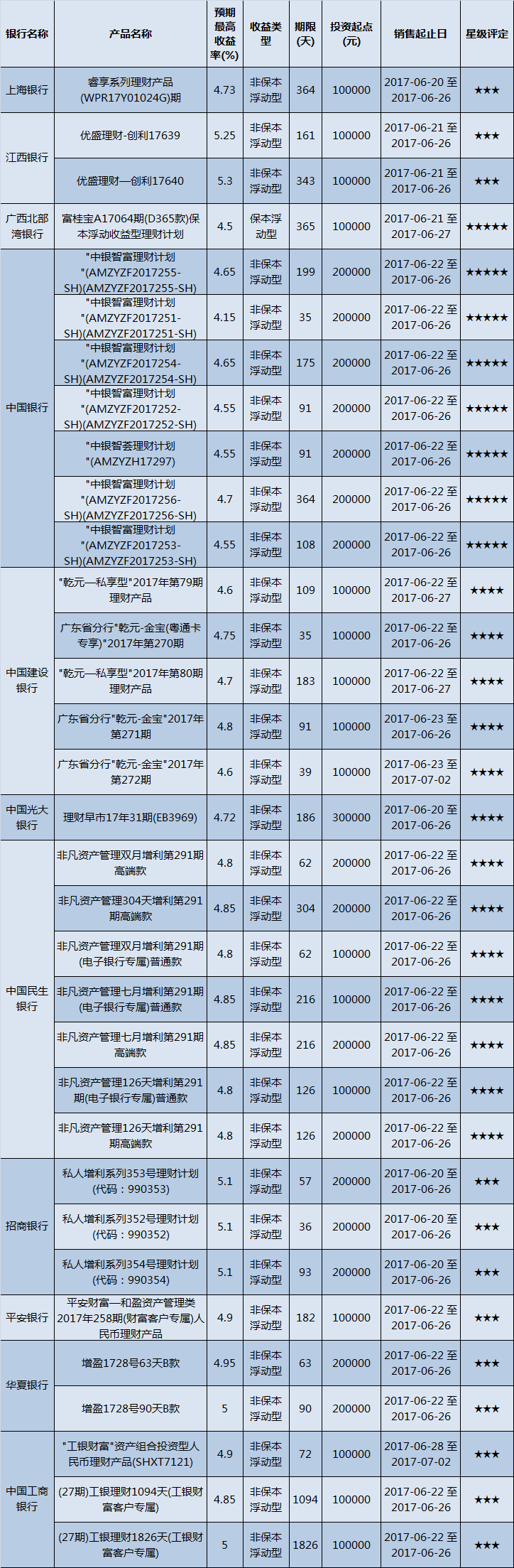 其余产品暂时未予评级。(数据截至上周五18:00)
