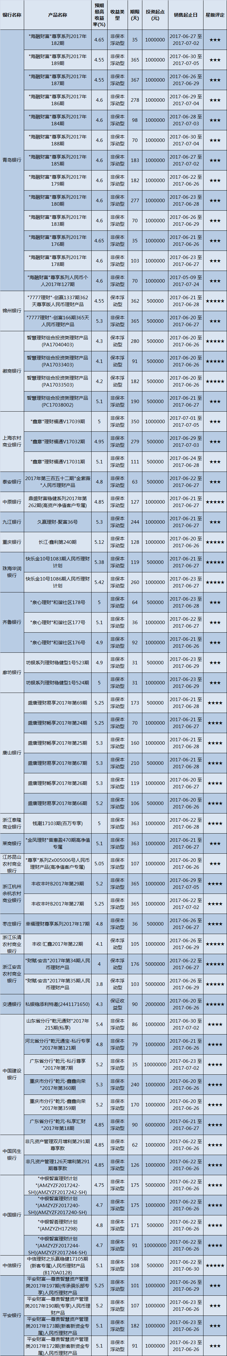 本周投资门槛在10万元至50万元(不含)的产品有115款,平均预期收益为4.89%。其中有86款获得普益标准星级评定,平均预期收益率为4.85%。其中三星产品40款,平均预期收益率为4.98%;四星产品29款,平均预期收益率为4.87%;五星产品17款,平均预期收益率为4.51%。