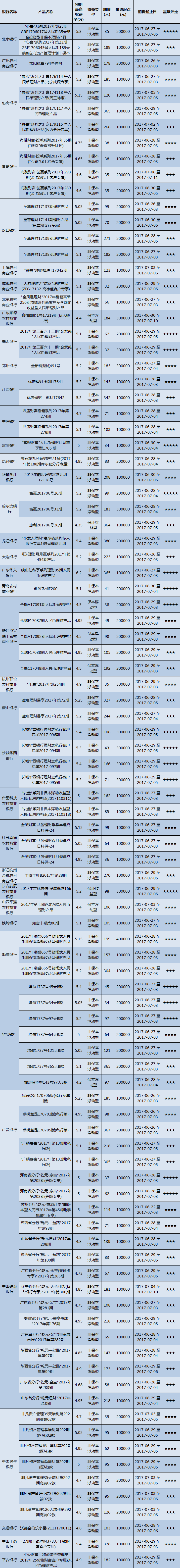 本周投资门槛在10万元至50万元(不含)的产品有130款,平均预期收益为4.91%。其中有97款获得普益标准星级评定,平均预期收益率为5.00%。其中三星产品45款,平均预期收益率为4.89%;四星产品33款,平均预期收益率为5.03%;五星产品19款,平均预期收益率为5.21%。