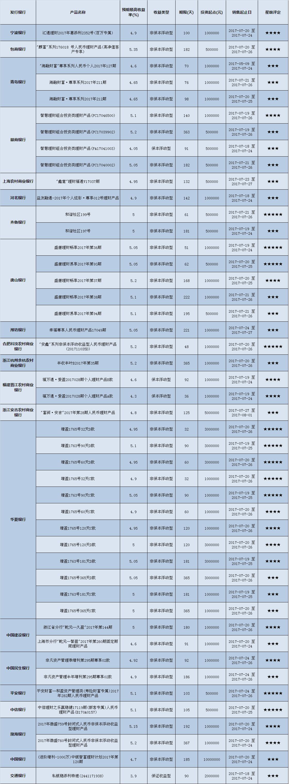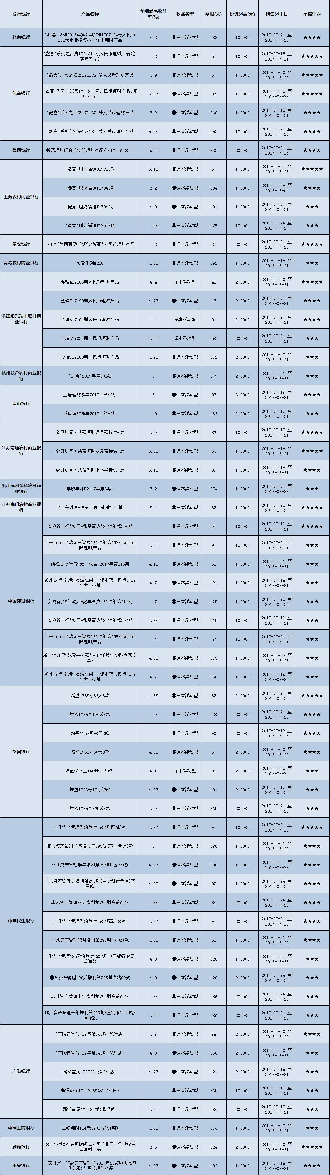 高门槛(50万元及以上)的理财产品中,华东地区有47款获得普益标准星级评定,平均预期收益率为4.96%。其中三星产品21款,平均预期收益率为4.8%;四星产品15款,平均预期收益率为5.13%;五星产品11款,平均预期收益率为5.05%。