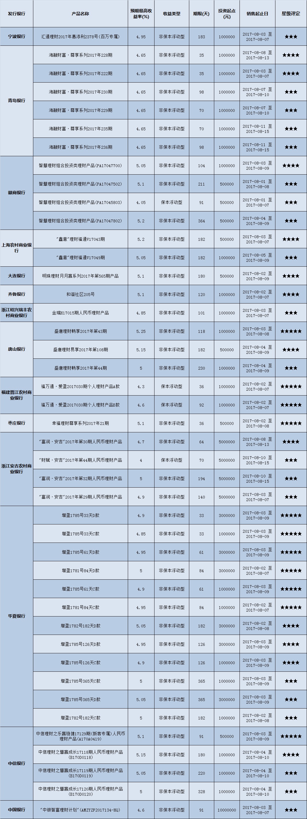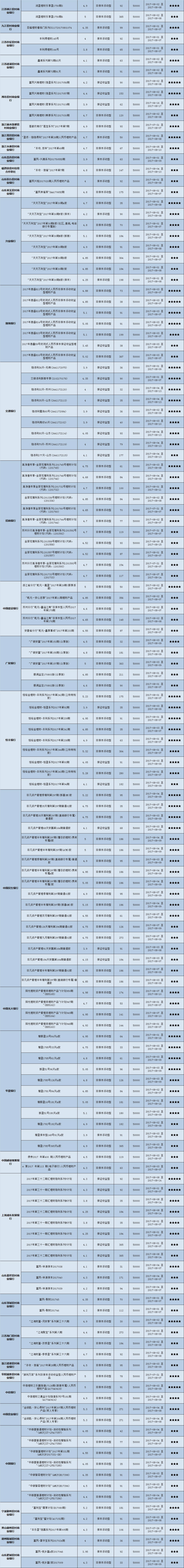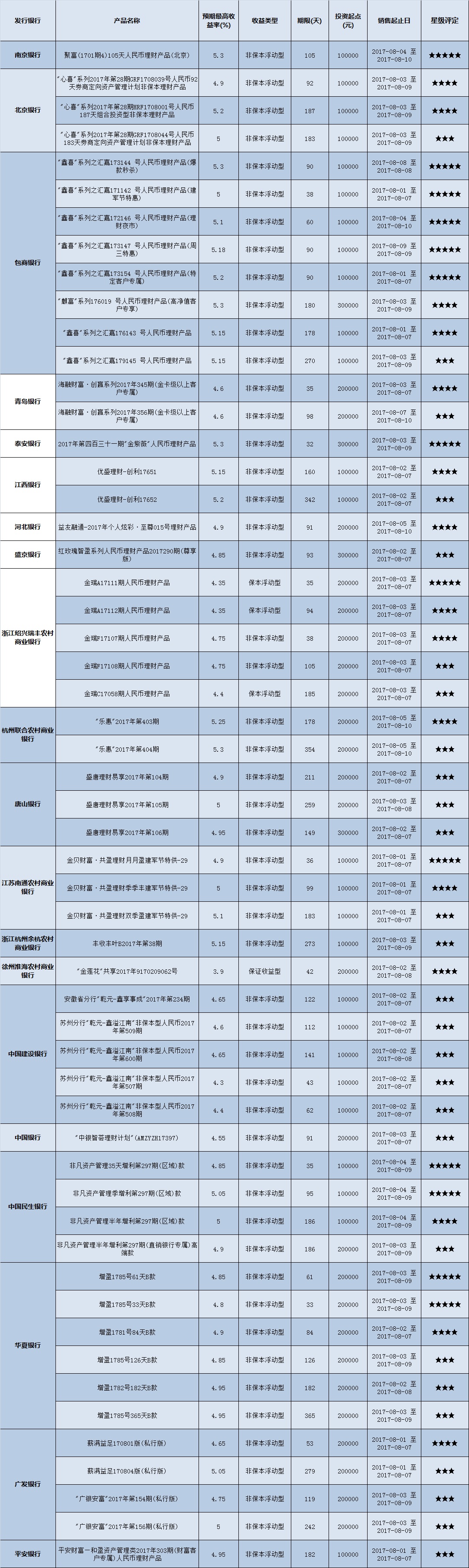 高门槛(50万元及以上)的理财产品中,华东地区有43款获得普益标准星级评定,平均预期收益率为4.88%。其中三星产品20款,平均预期收益率为4.82%;四星产品12款,平均预期收益率为4.97%;五星产品11款,平均预期收益率为4.90%。