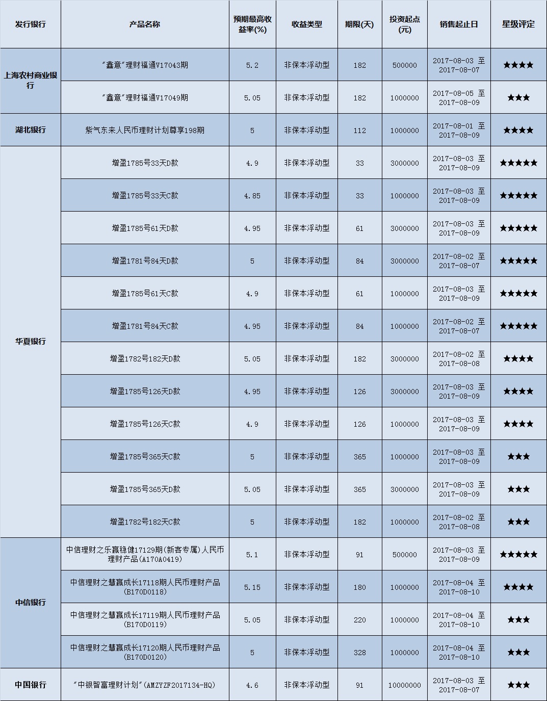 其余产品暂时未予评级。(数据截至上周五18:00)