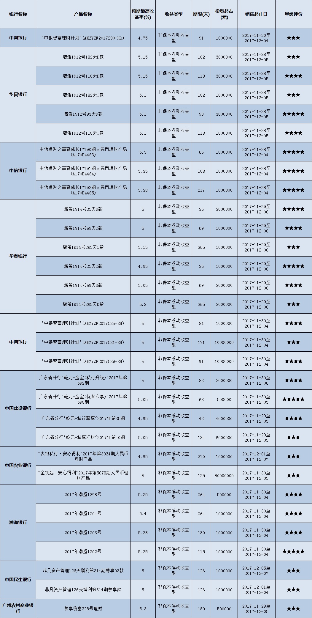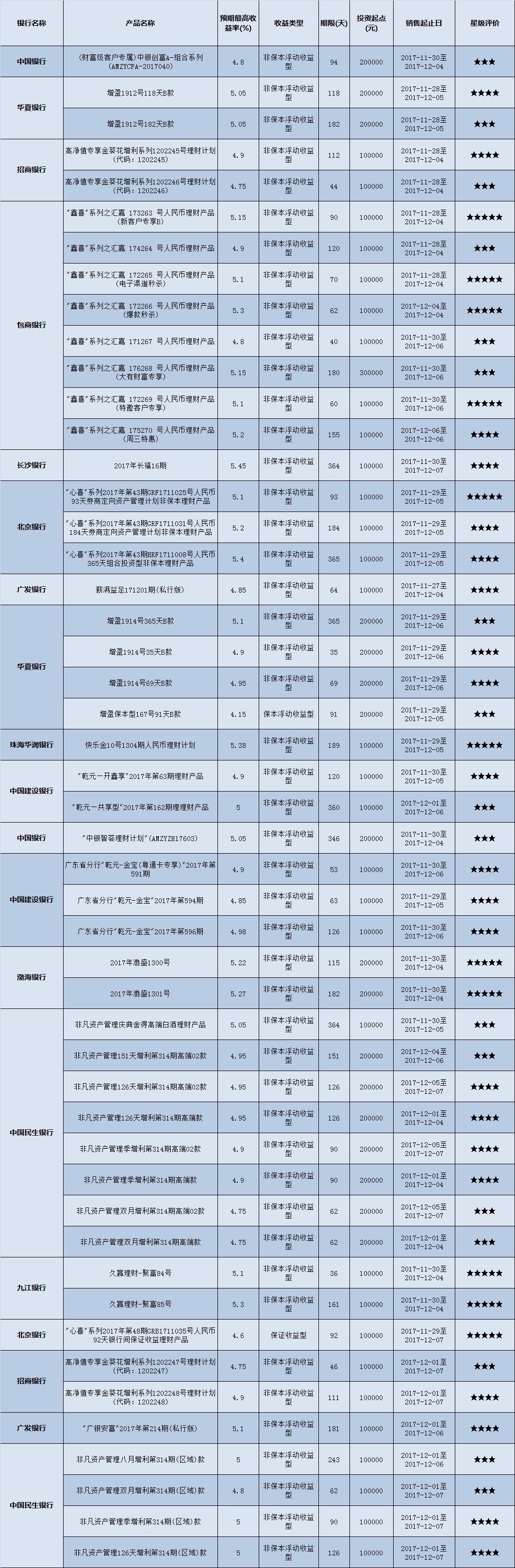 封闭式产品星级评价(2017-12-04)