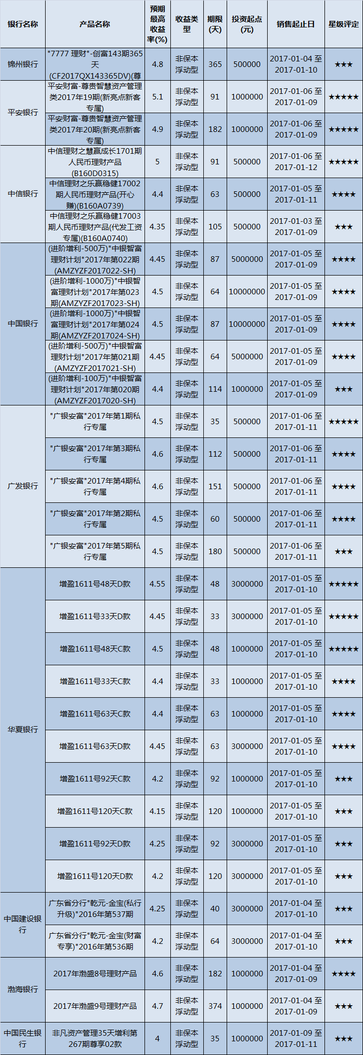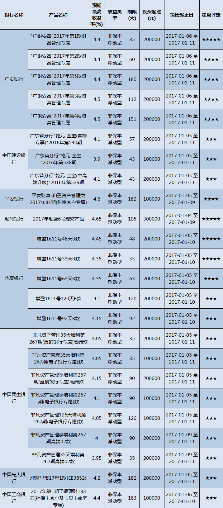 产品星级评定(2017-01-09)