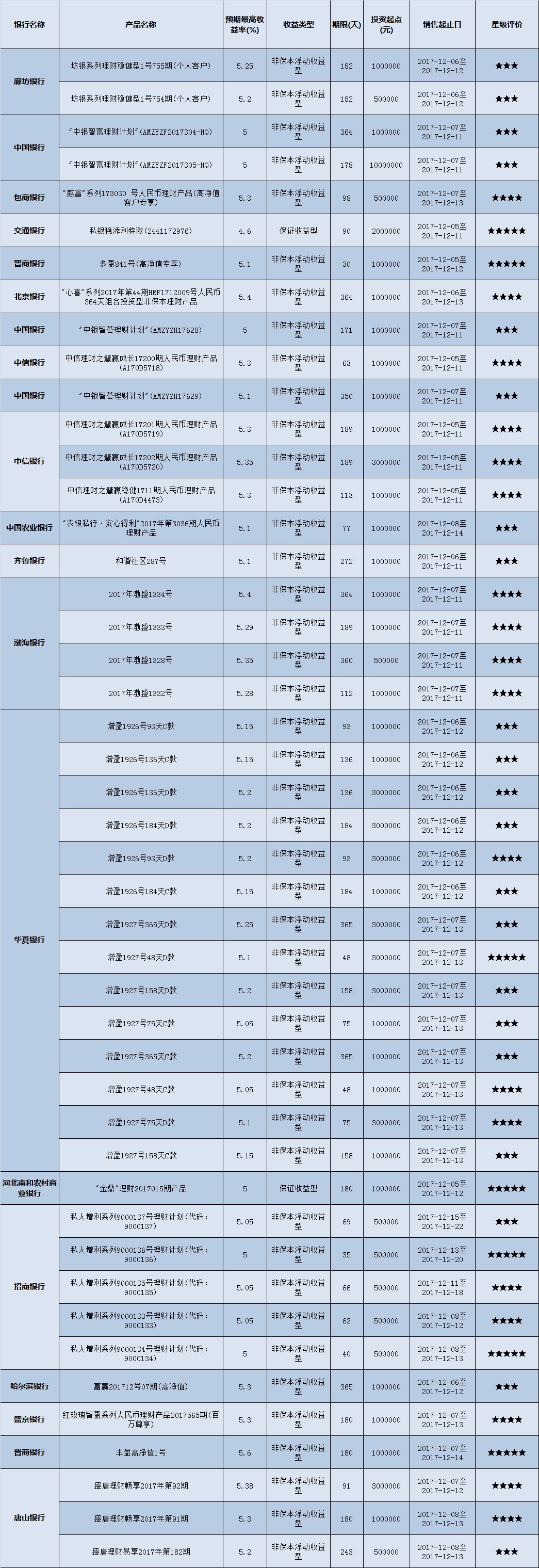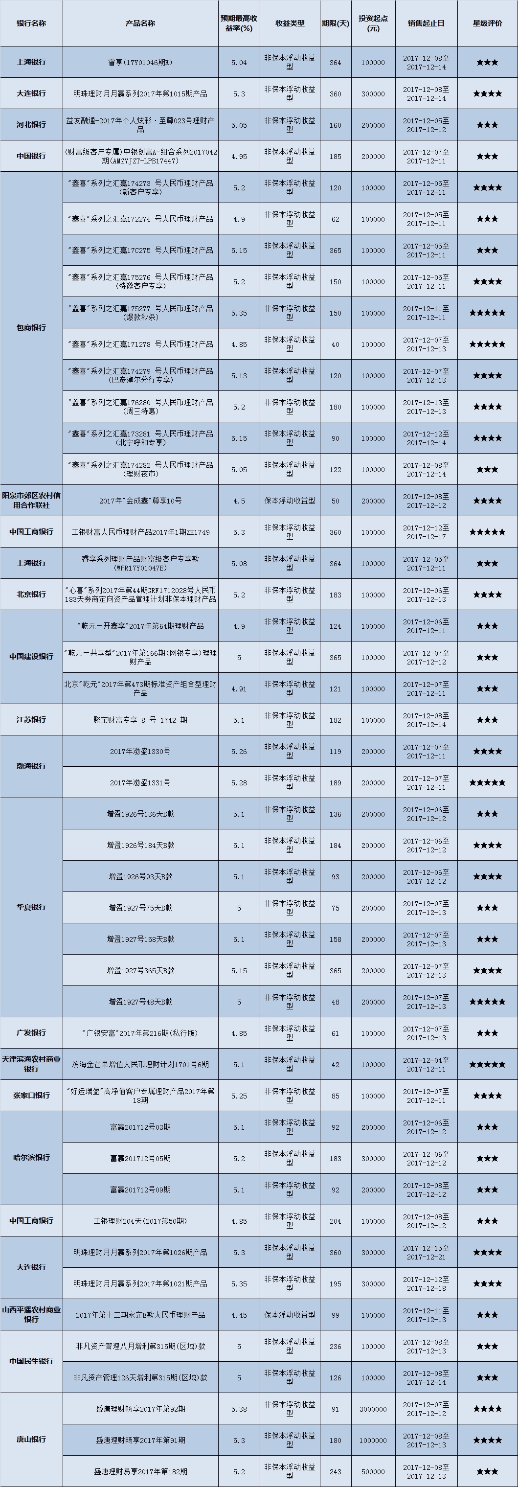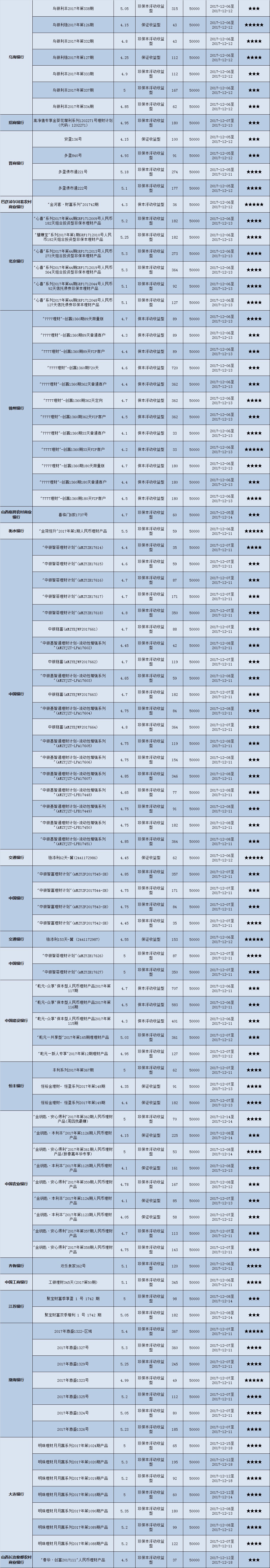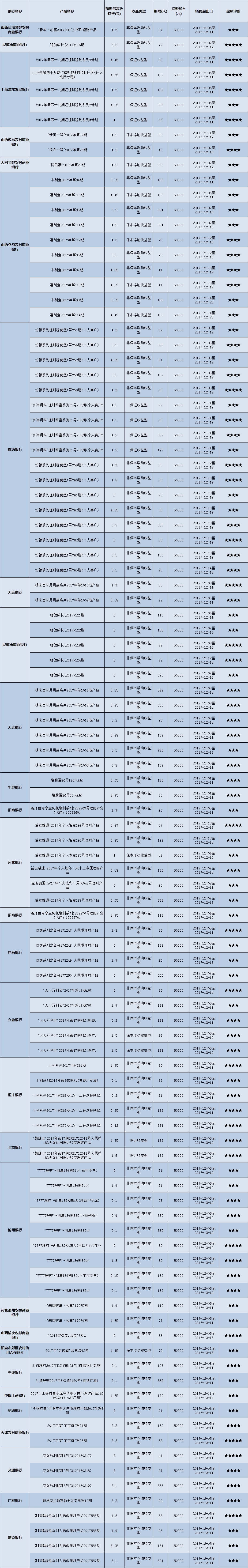 封闭式产品星级评价(2017-12-11)