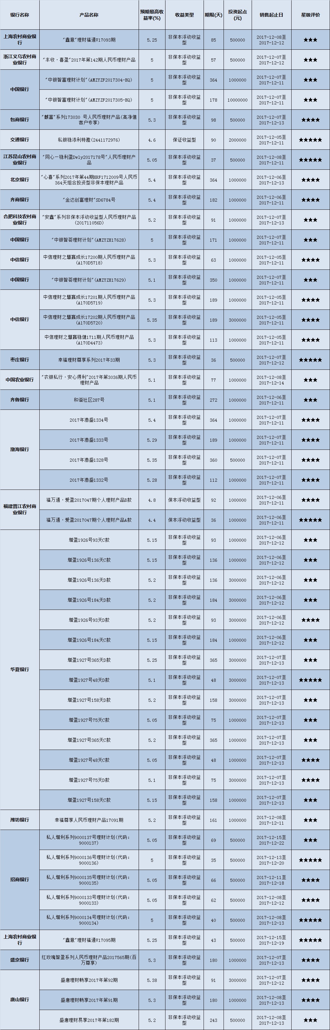 高门槛(50万元及以上)的理财产品中,华东地区有50款获得普益标准星级评价,平均预期收益率为5.15%。其中三星产品22款,平均预期收益率为5.13%;四星产品20款,平均预期收益率为5.25%;五星产品8款,平均预期收益率为4.96%。