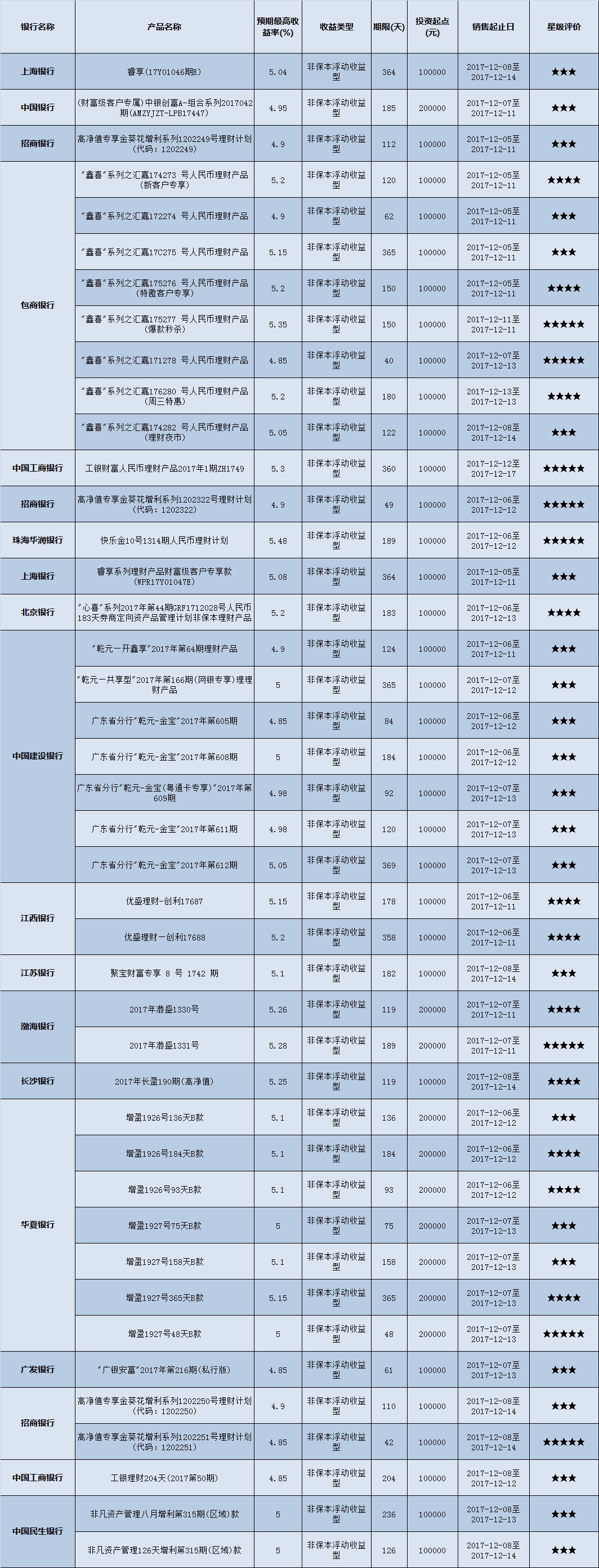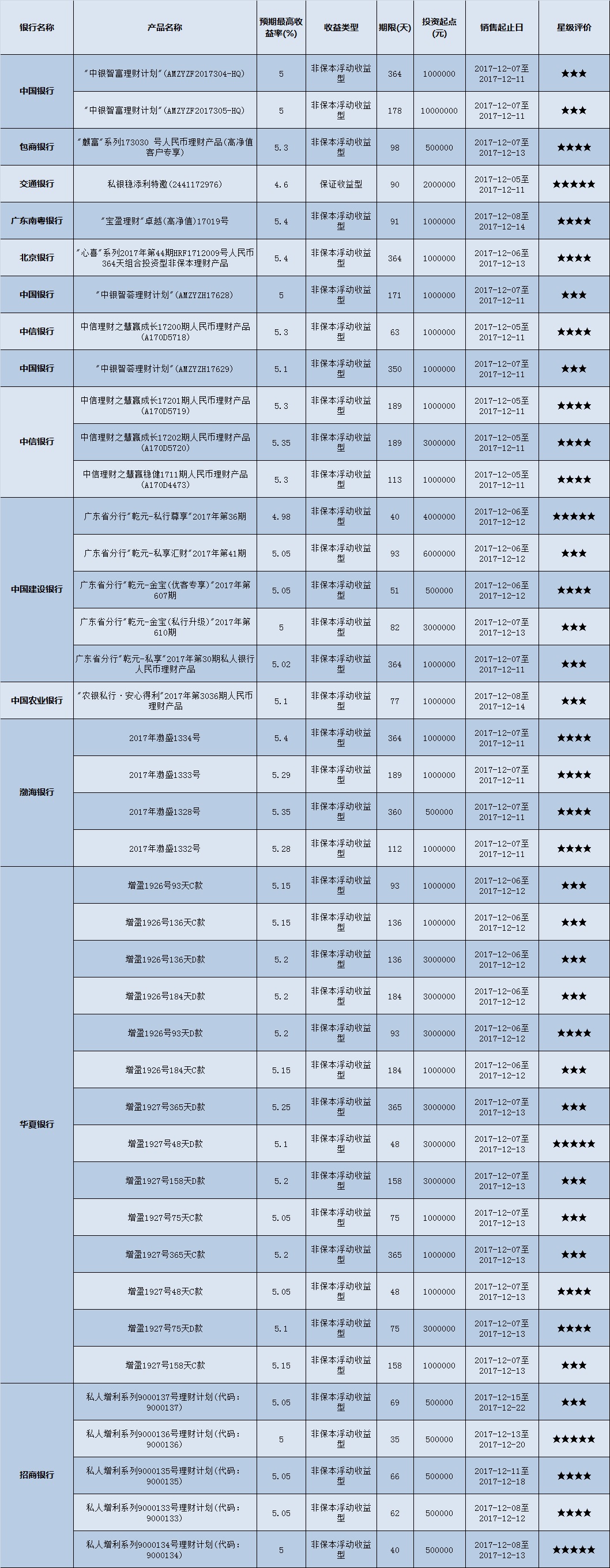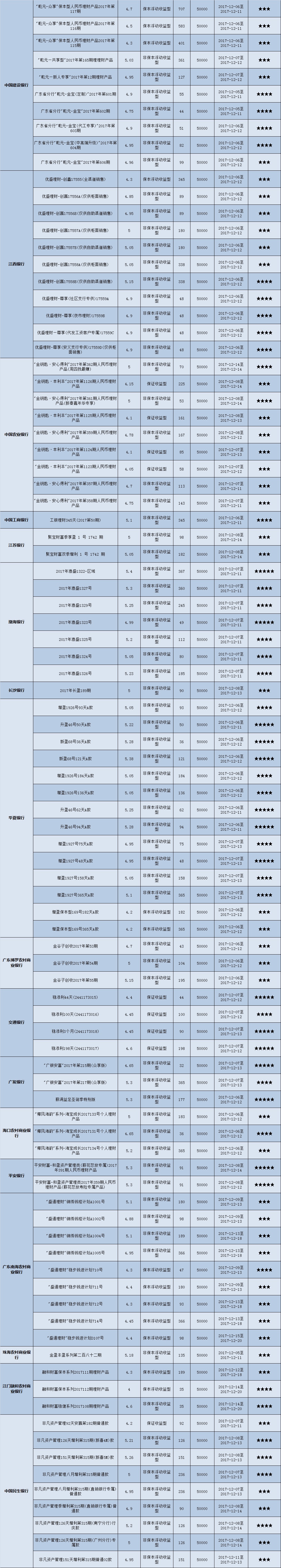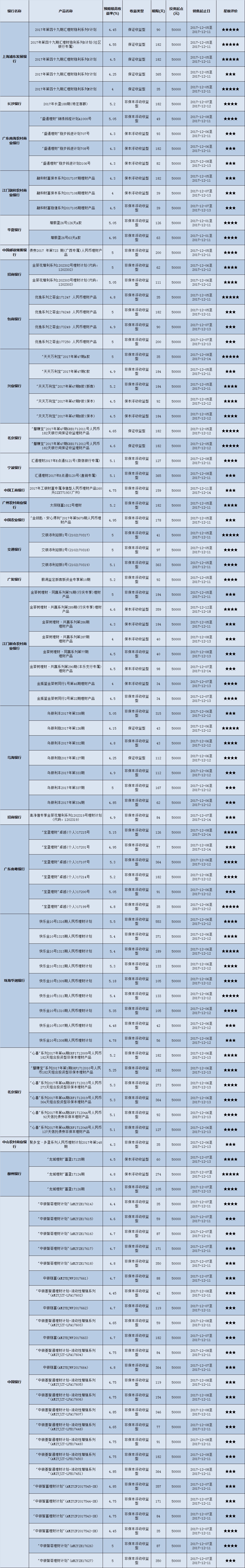 高门槛(50万元及以上)的理财产品中,华南地区有41款获得普益标准星级评价,平均预期收益率为5.14%。其中三星产品19款,平均预期收益率为5.11%;四星产品17款,平均预期收益率为5.25%;五星产品5款,平均预期收益率为4.94%。
