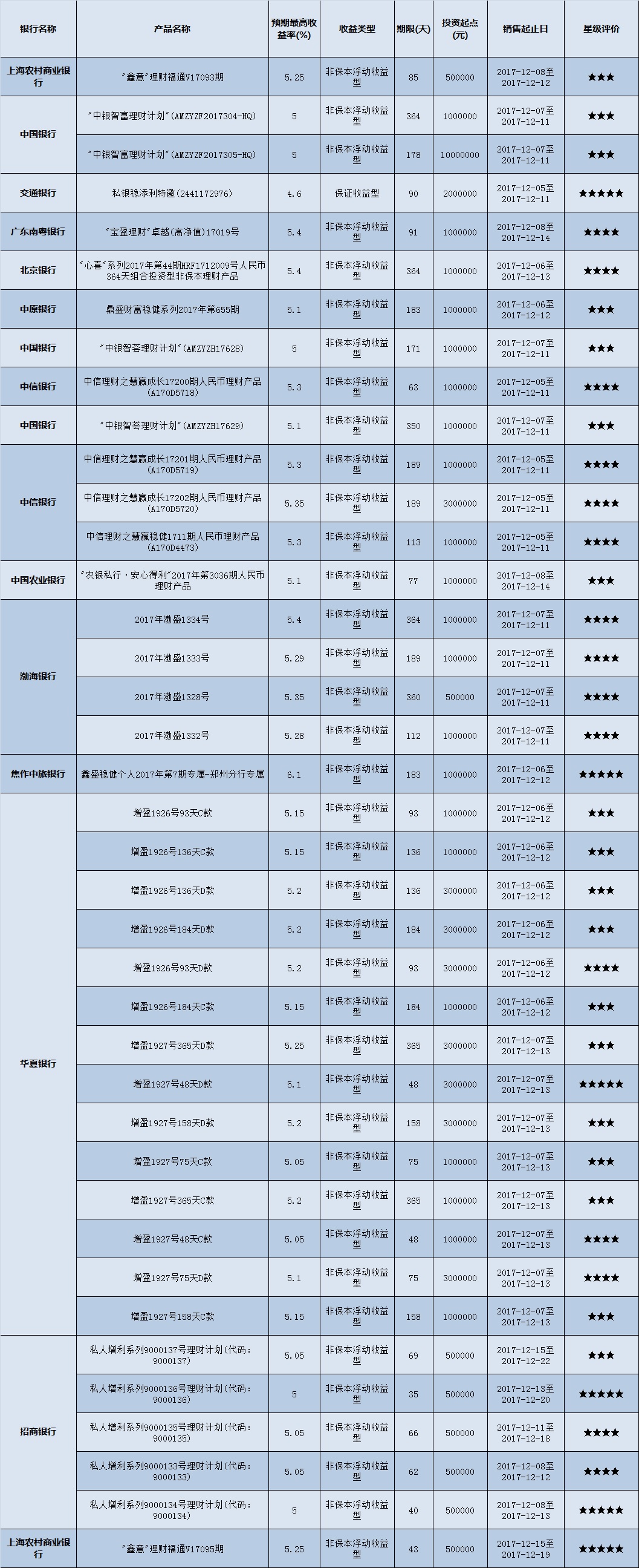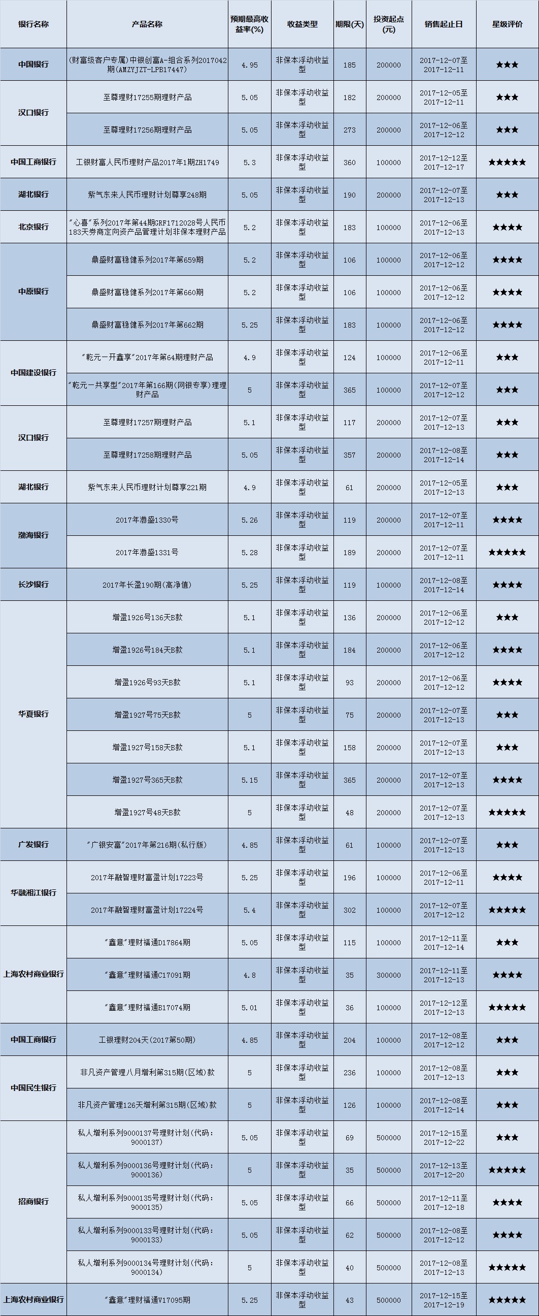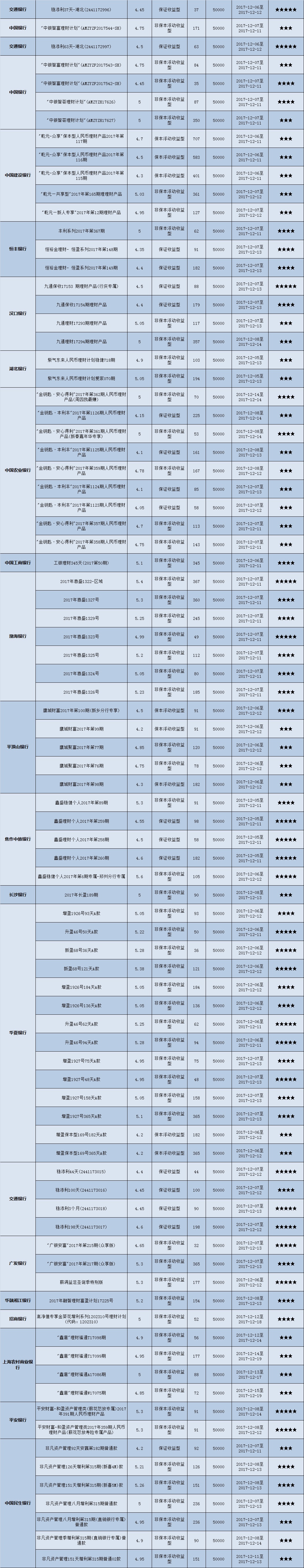 高门槛(50万元及以上)的理财产品中,华中地区有39款获得普益标准星级评价,平均预期收益率为5.18%。其中三星产品18款,平均预期收益率为5.13%;四星产品15款,平均预期收益率为5.25%;五星产品6款,平均预期收益率为5.17%。