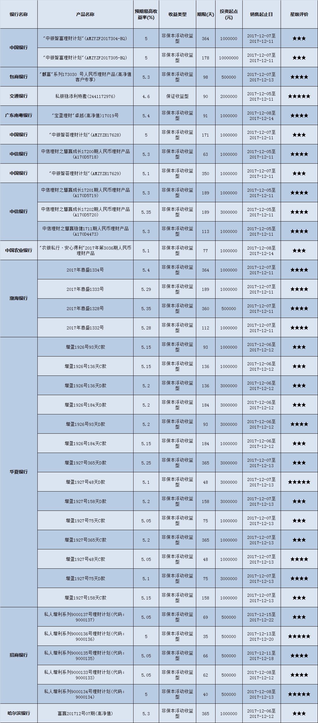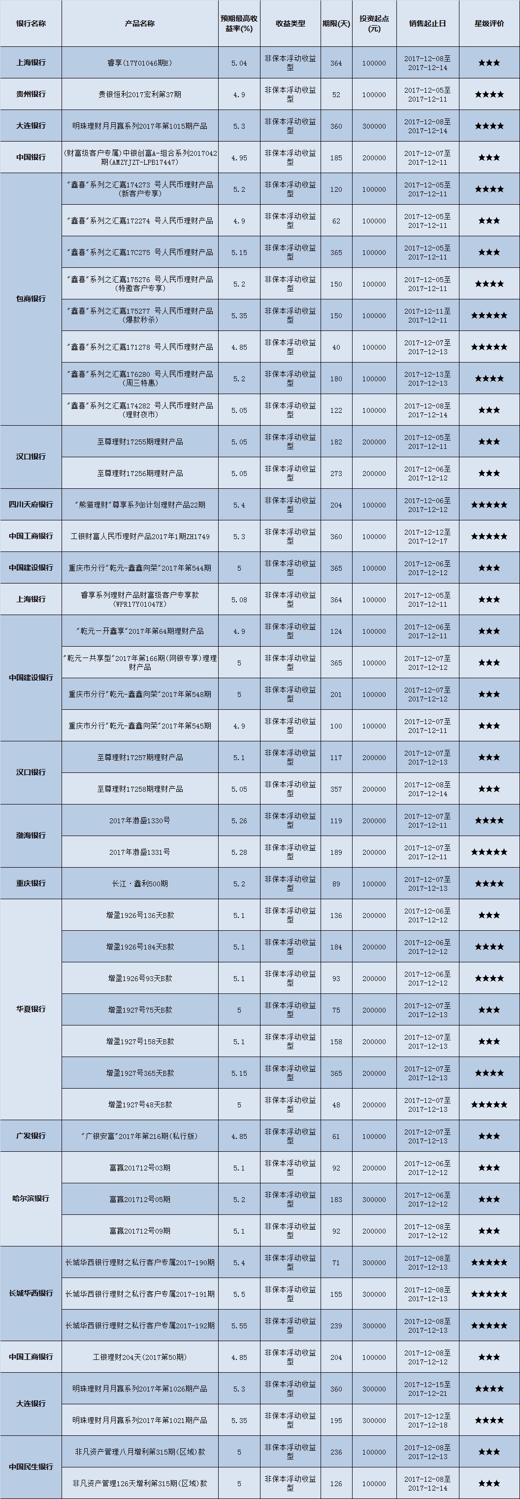 高门槛(50万元及以上)的理财产品中,西南地区有36款获得普益标准星级评价,平均预期收益率为5.16%。其中三星产品17款,平均预期收益率为5.13%;四星产品15款,平均预期收益率为5.25%;五星产品4款,平均预期收益率为4.92%。