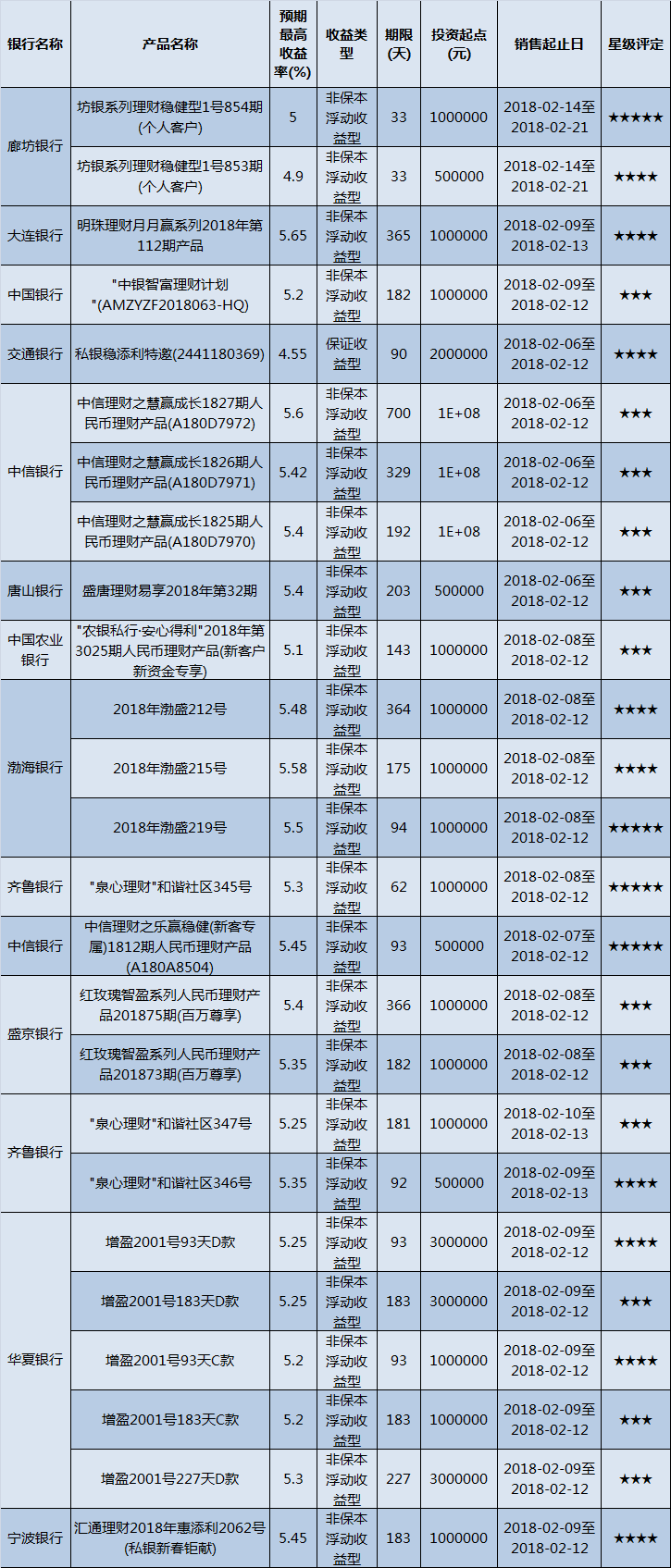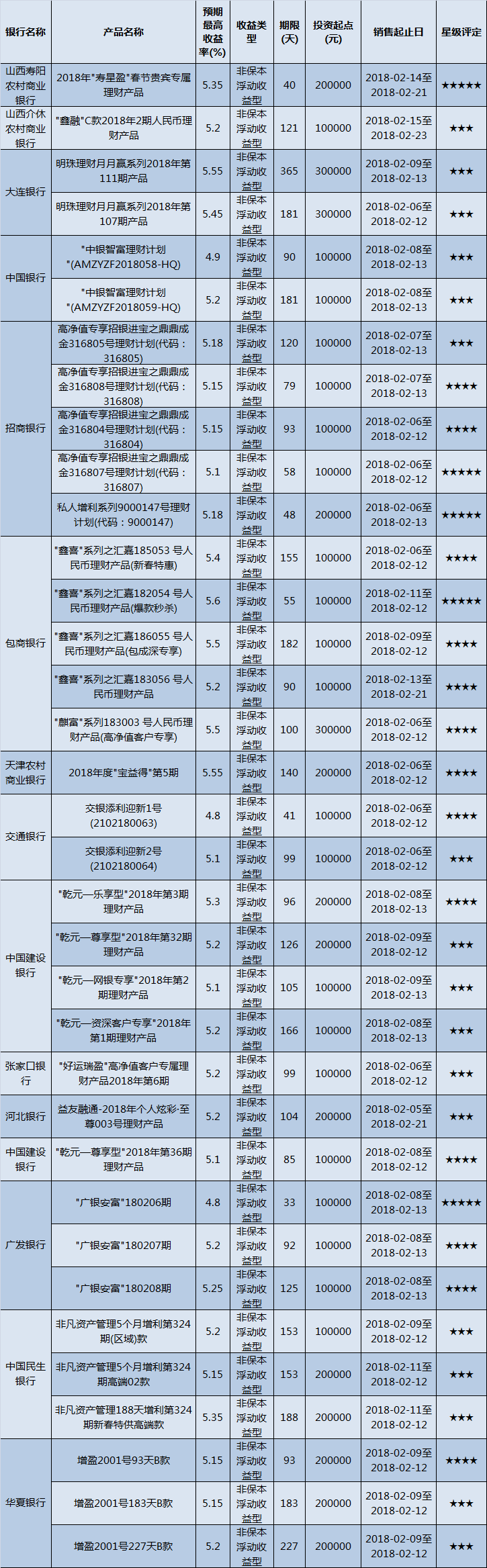 封闭式产品星级评价(2018-02-12)