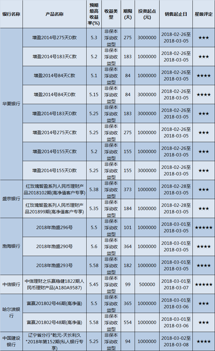 其余产品暂时未予评级。(数据截至上周五18:00)