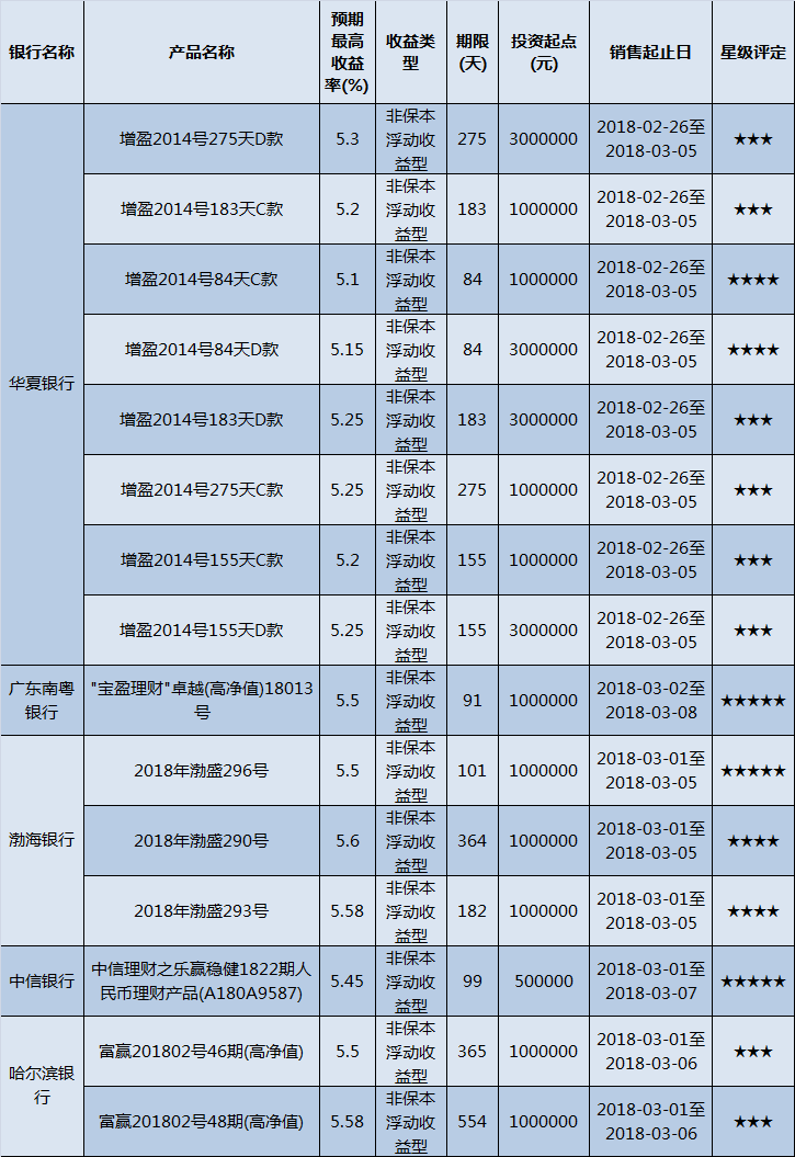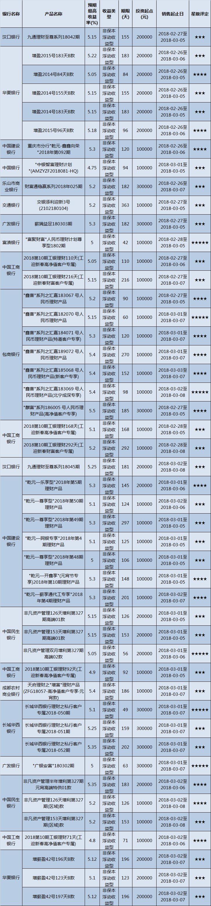 封闭式产品星级评价(2018-03-05)