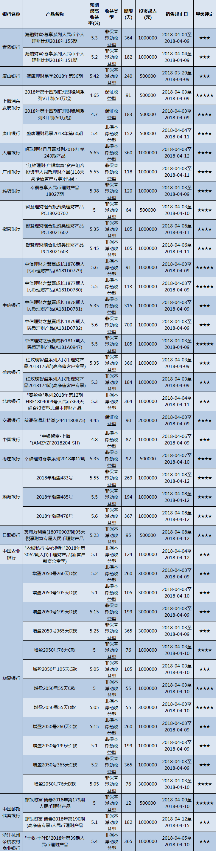 低门槛(10万元以下)理财产品中,华东地区有433款获得普益标准星级评定,平均预期收益率为4.93%。其中三星产品205款,平均预期收益率为4.83%;四星产品133款,平均预期收益率5.03%;五星产品95款,平均预期收益率为5%。