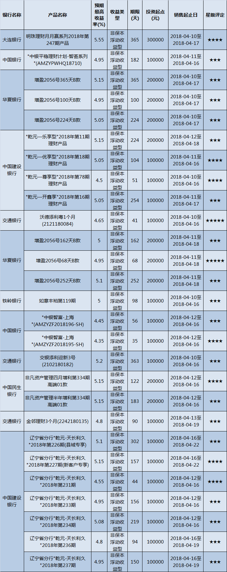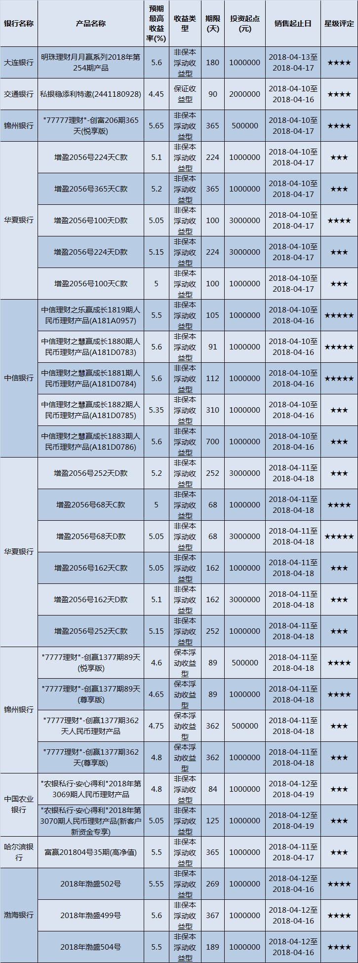 其余产品暂时未予评级。(数据截至上周五18:00)