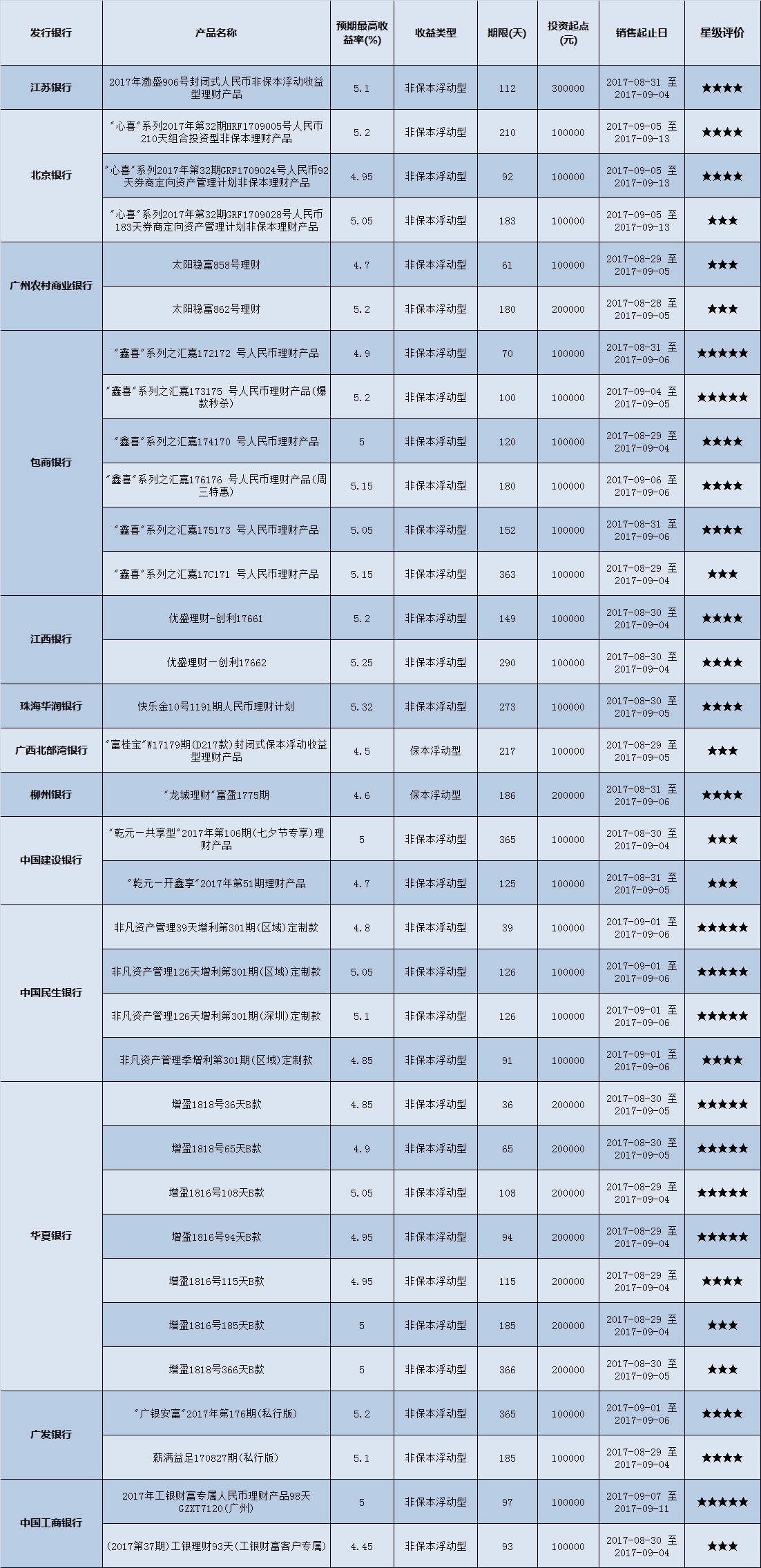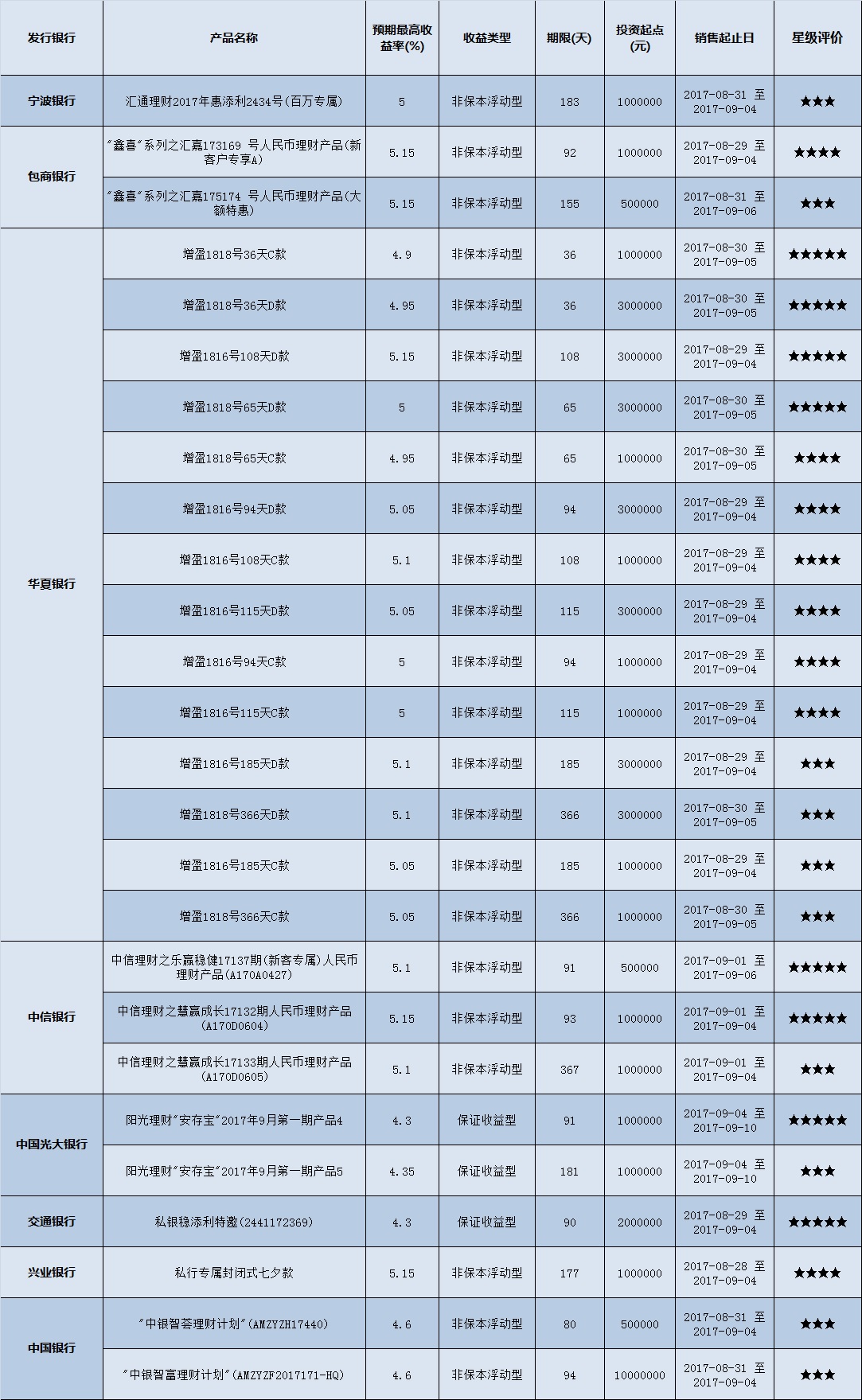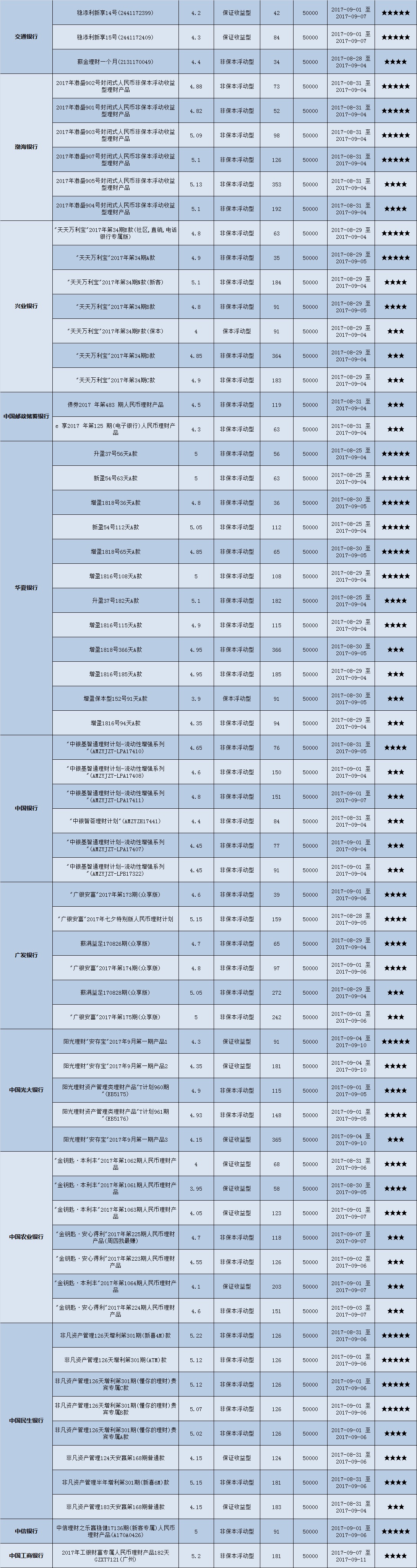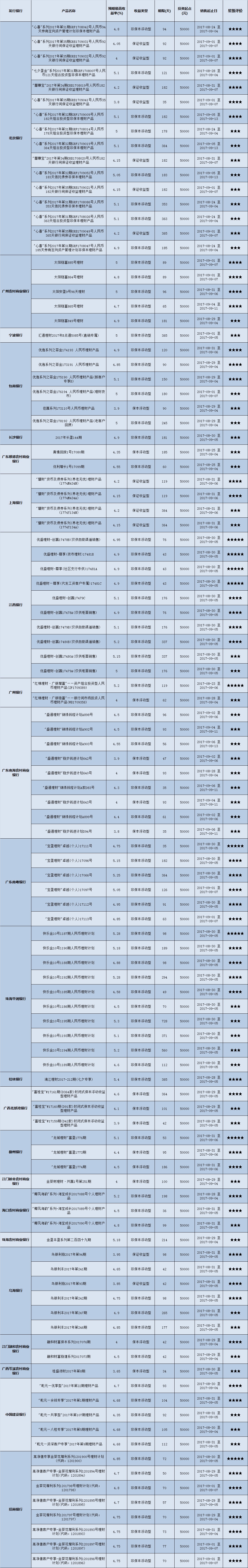 封闭式产品星级评价(2017-09-04)