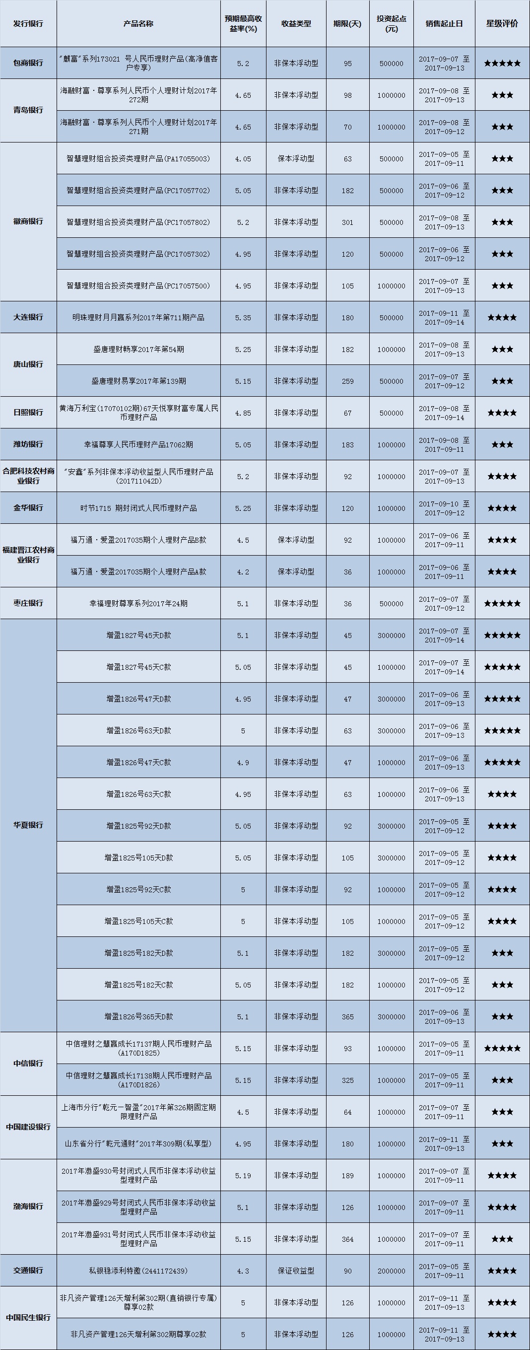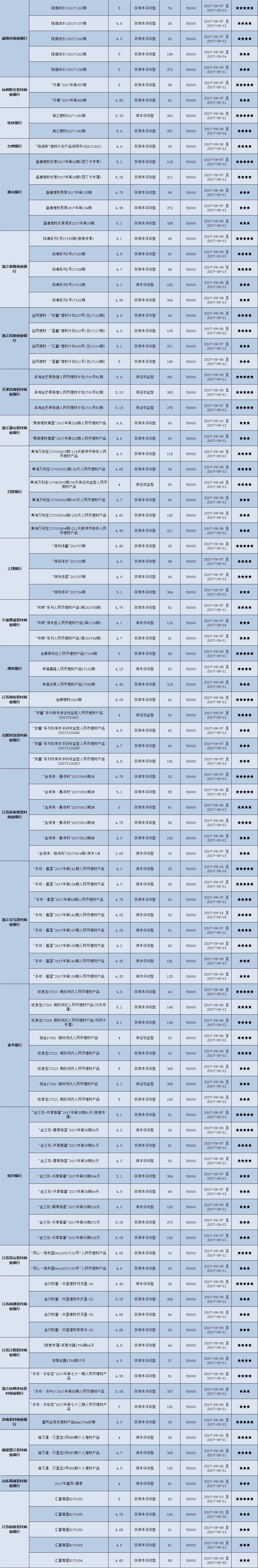 低门槛(10万元以下)理财产品中,华东地区有422款获得普益标准星级评定,平均预期收益率为4.69%。其中三星产品189款,平均预期收益率为4.61%;四星产品141款,平均预期收益率4.66%;五星产品92款,平均预期收益率为4.89%。