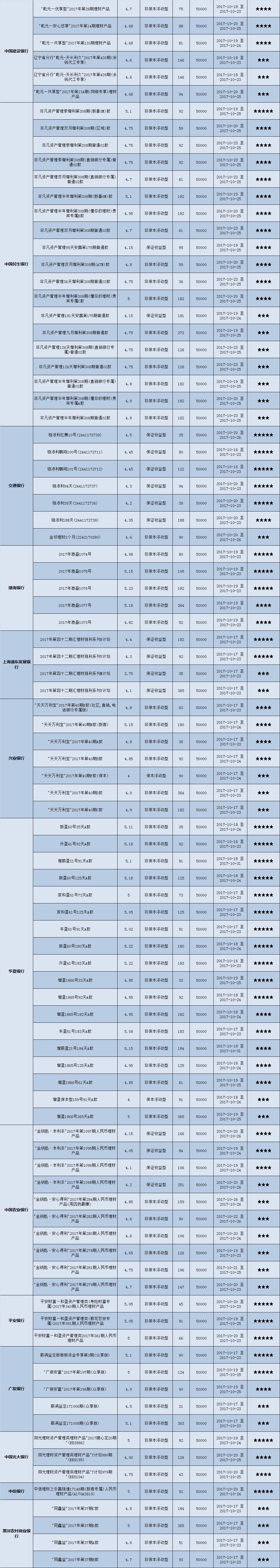 中等门槛(10万元至50万元(不含))的理财产品中,东北地区31款获得普益标准星级评定,平均预期收益率为4.94%。其中三星产品11款,平均预期收益率为4.74%;四星产品11款,平均预期收益率为4.96%;五星产品9款,预期收益率为5.14%。