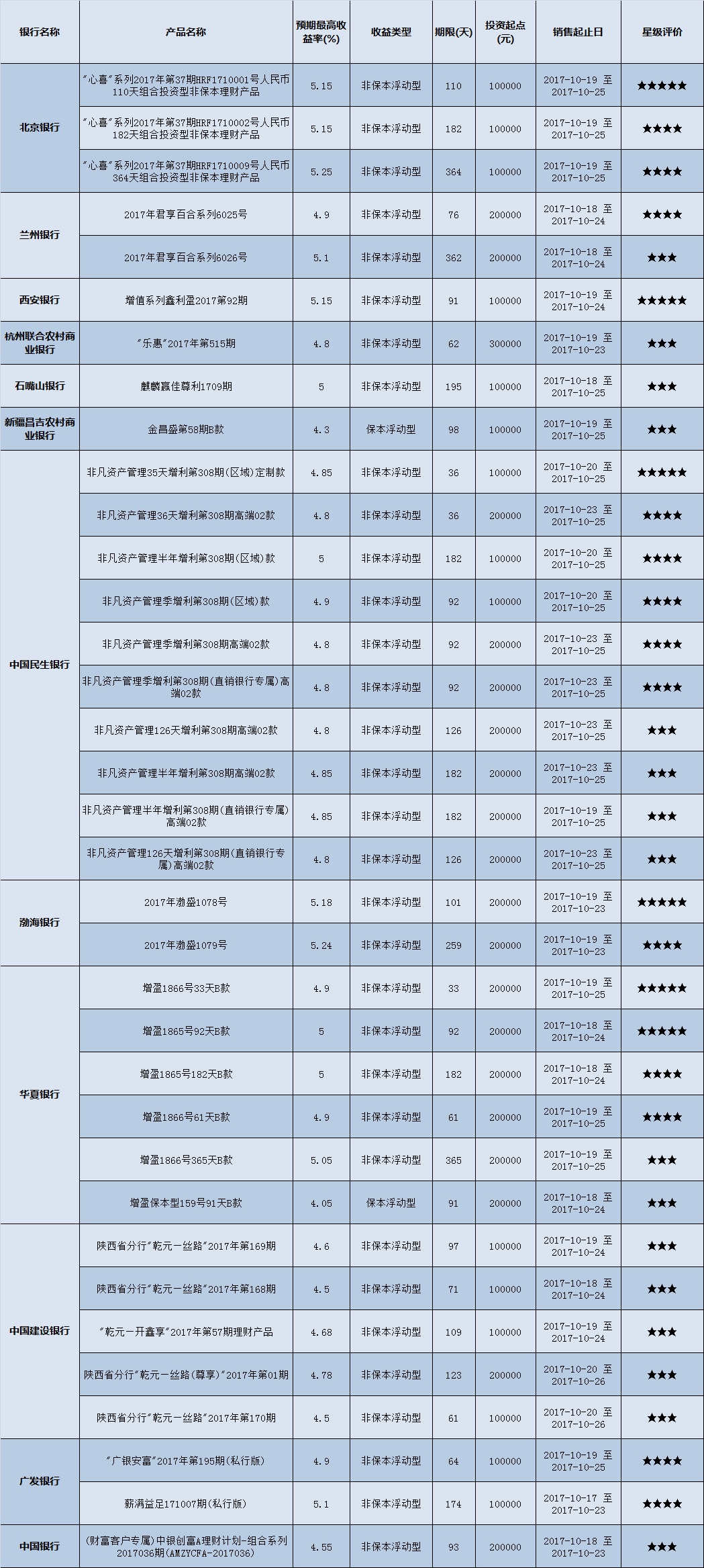 低门槛(10万元以下)理财产品中,西北地区有179款获得普益标准星级评定,平均预期收益率为4.69%。其中三星产品76款,平均预期收益率为4.58%;四星产品62款,平均预期收益率4.68%;五星产品41款,平均预期收益率为4.90%。