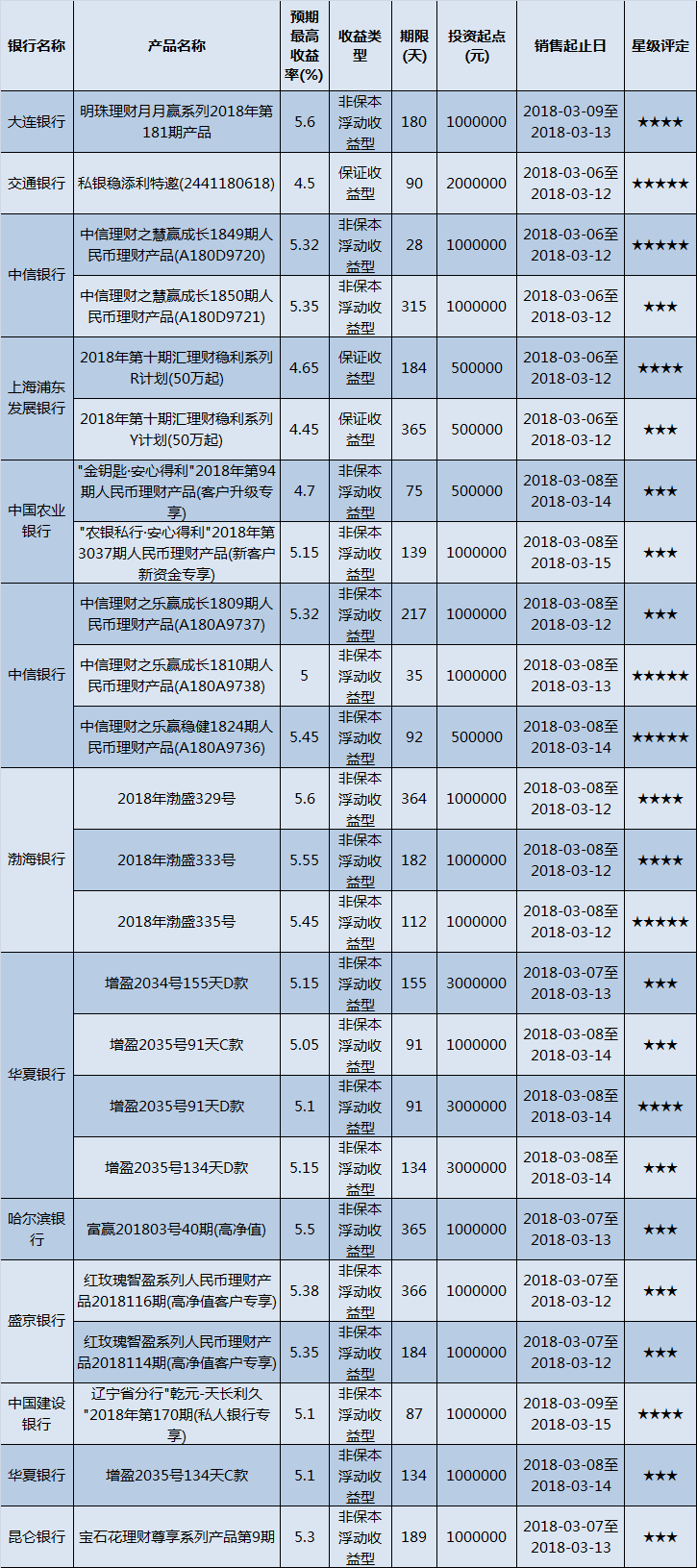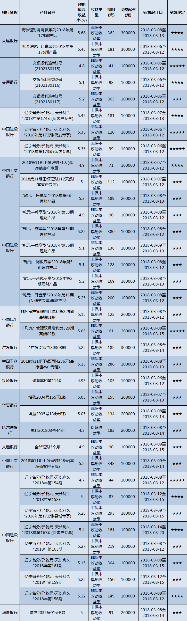封闭式产品星级评价(2018-03-12)