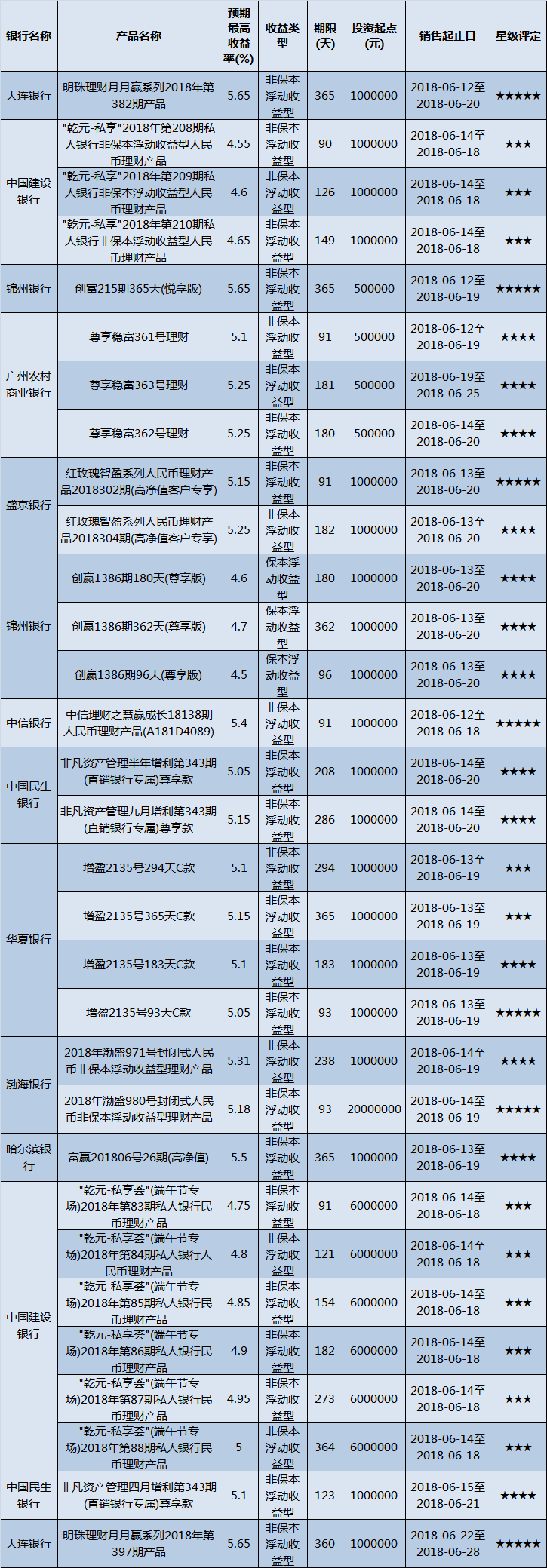 高门槛(50万元及以上)的理财产品中,东北地区有31款获得普益标准星级评定,平均预期收益率为5.06%。其中三星产品11款,平均预期收益率为4.85%;四星产品13款,平均预期收益率为5.07%;五星产品7款,平均预期收益率为5.39%。