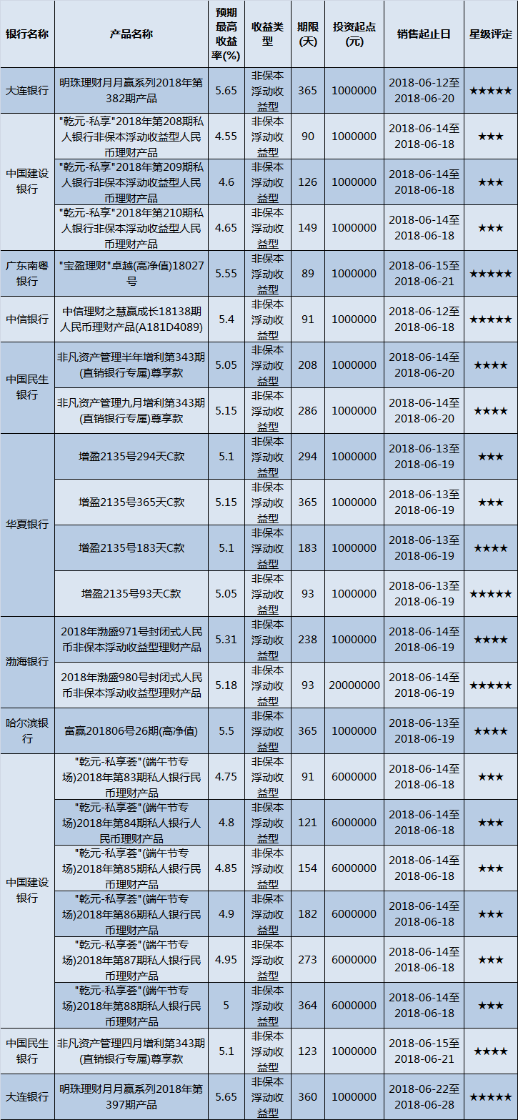 高门槛(50万元及以上)的理财产品中,西南地区有23款获得普益标准星级评定,平均预期收益率为5.09%。其中三星产品11款,平均预期收益率为4.85%;四星产品6款,平均预期收益率为5.2%;五星产品6款,平均预期收益率为5.41%。