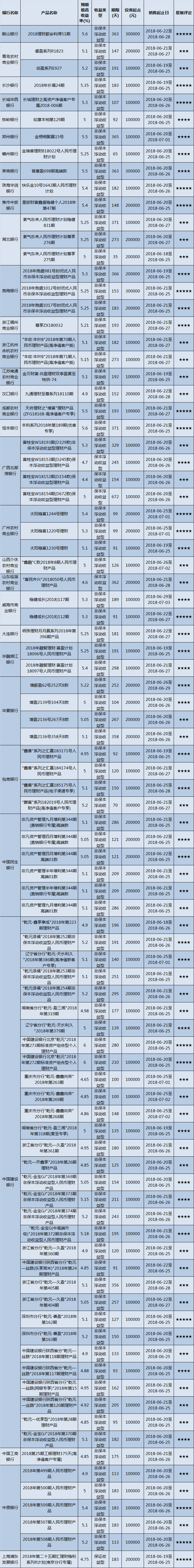 本周在售产品1165款,平均预期收益为4.81%。其中有873款获得普益标准星级评定,平均预期收益率为4.97%。其中三星产品408款,平均预期收益率为4.8%;四星产品291款,平均预期收益率为5.08%;五星产品174款,平均预期收益率为5.18%。