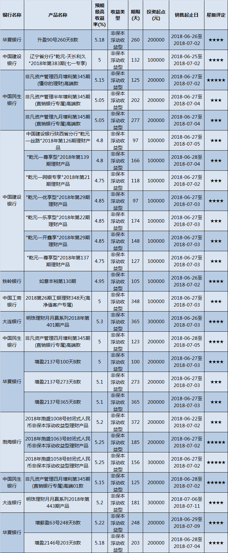 高门槛(50万元及以上)的理财产品中,东北地区有15款获得普益标准星级评定,平均预期收益率为5.08%。其中三星产品7款,平均预期收益率为5.06%;四星产品7款,平均预期收益率为5.04%;五星产品1款,平均预期收益率为5.4%。