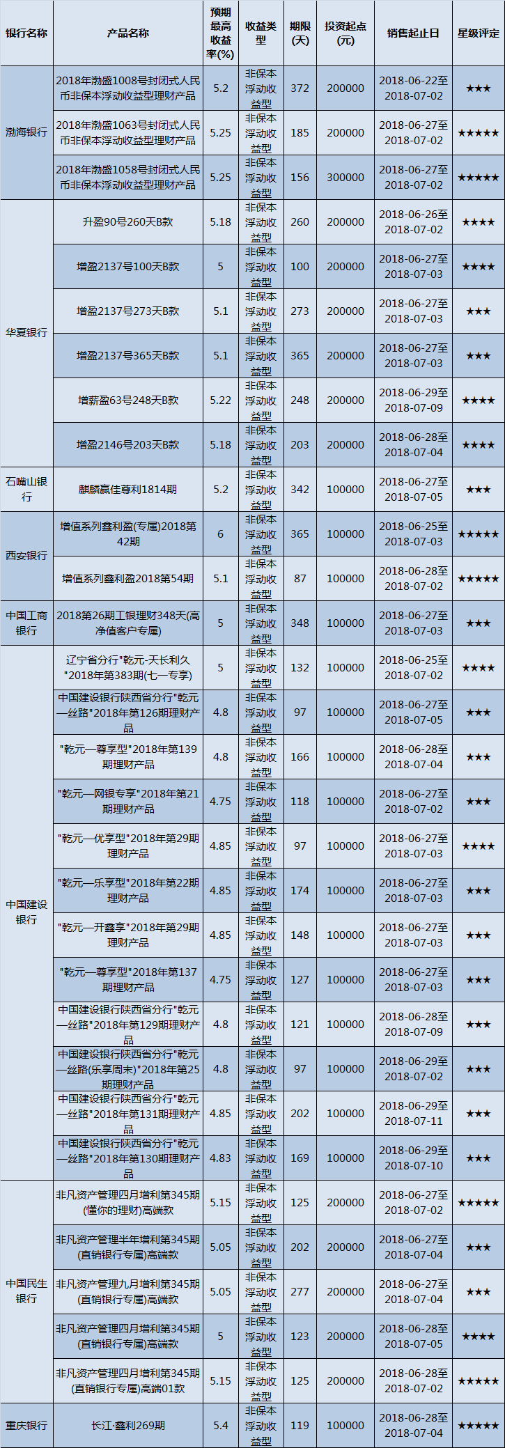 封闭式产品星级评价(2018-07-02)