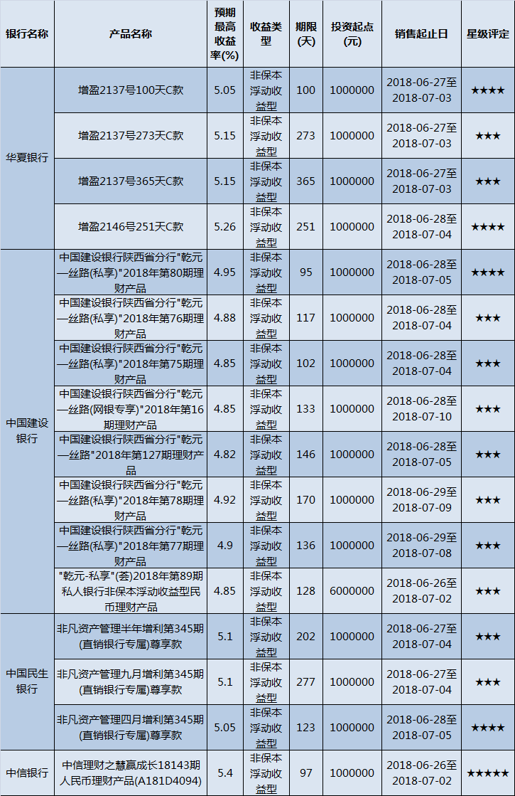 其余产品暂时未予评级。(数据截至上周五18:00)