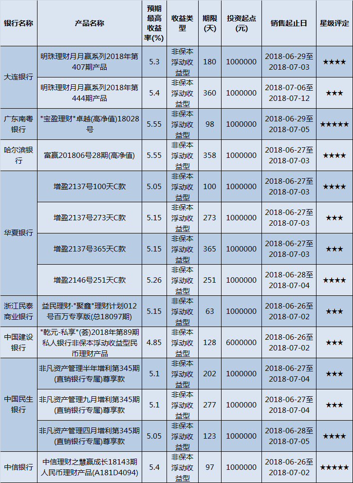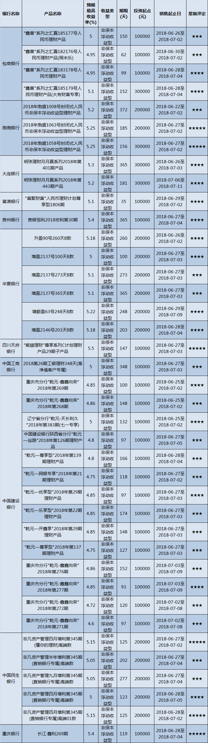 其余产品暂时未予评级。(数据截至上周五18:00)
