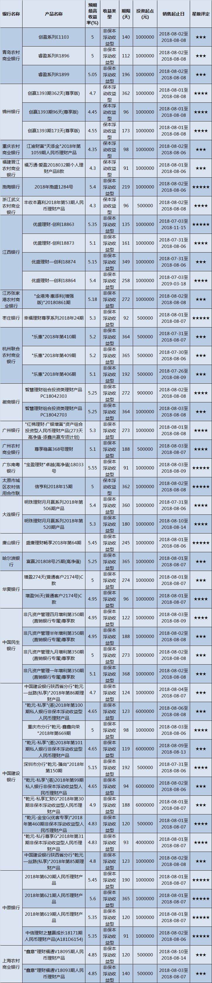 本周投资门槛在10万元至50万元(不含)的产品有108款,平均预期收益为4.79%。其中有81款获得普益标准星级评定,平均预期收益率为4.87%。其中三星产品38款,平均预期收益率为4.68%;四星产品27款,平均预期收益率为4.98%;五星产品16款,平均预期收益率为5.14%。