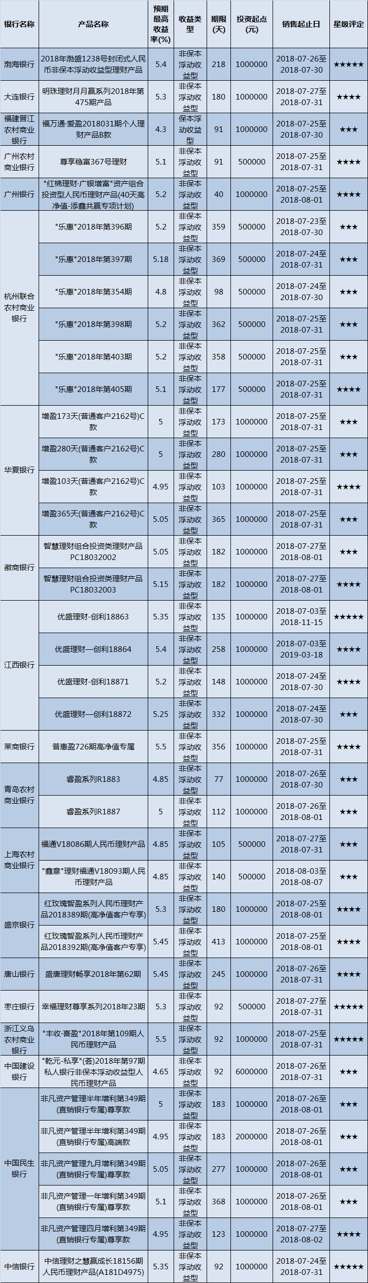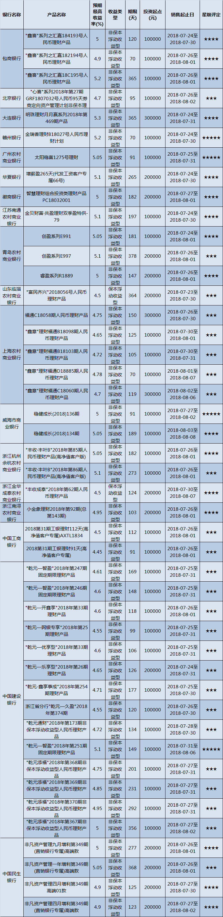 其余产品暂时未予评级。(数据截至上周五18:00)