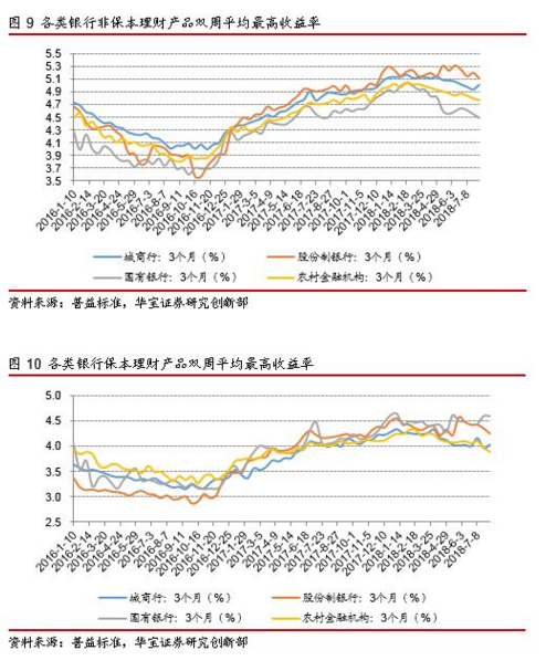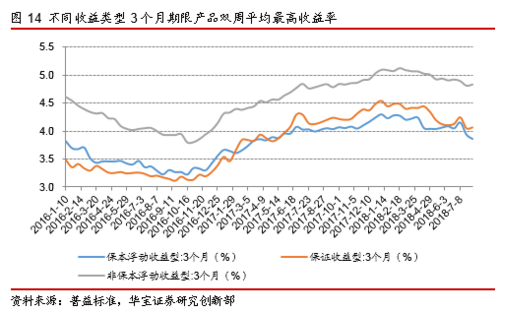 本次双周:非同业3个月期限保本保收益型、保本浮动收益型以及非保本浮动收益型理财产品的平均预期收益率分别为4.06%、3.86%、4.82%,与上一双周相比,保本浮动收益型理财下降8BP,保本保收益和非保本浮动收益型理财均上升2BP。